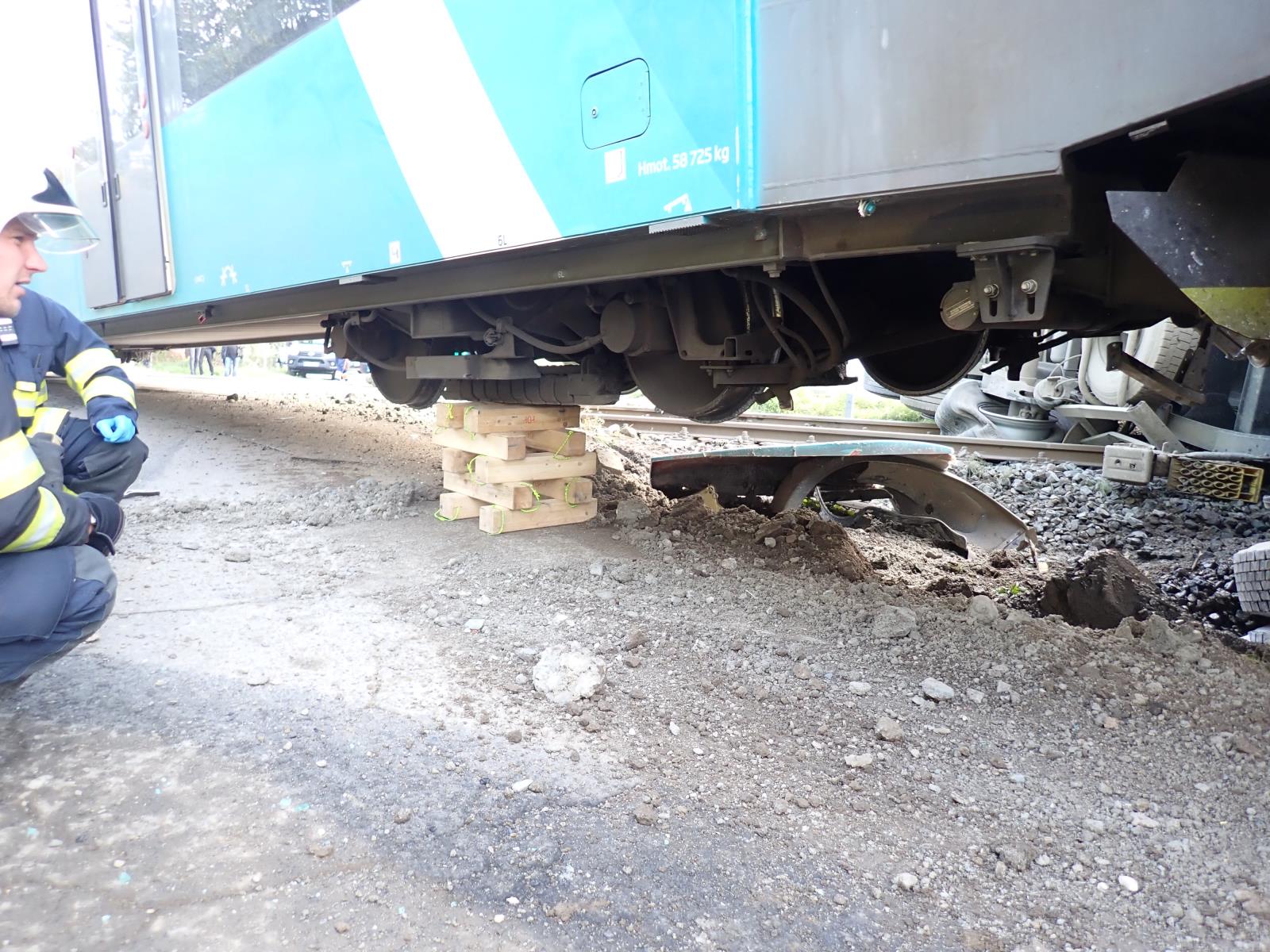 Hasiči provedli u vlaku i nákladního auta stabilizaci proti převrácení. Následně místo předali drážním hasičům z Přerova.