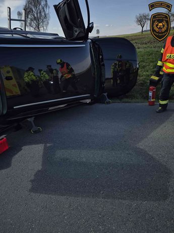 Hasiči po příjezdu zjistili, že jedno z vozidel skončilo po nárazu převrácené na boku. Jeden z řidičů byl již mimo havarované auto, druhý zůstal uvnitř a nemohl se dostat ven. Jednotky nejprve vozidlo stabilizovaly, aby zabránily jeho pohybu, a poté pomohly zraněnému řidiči bezpečně ven.