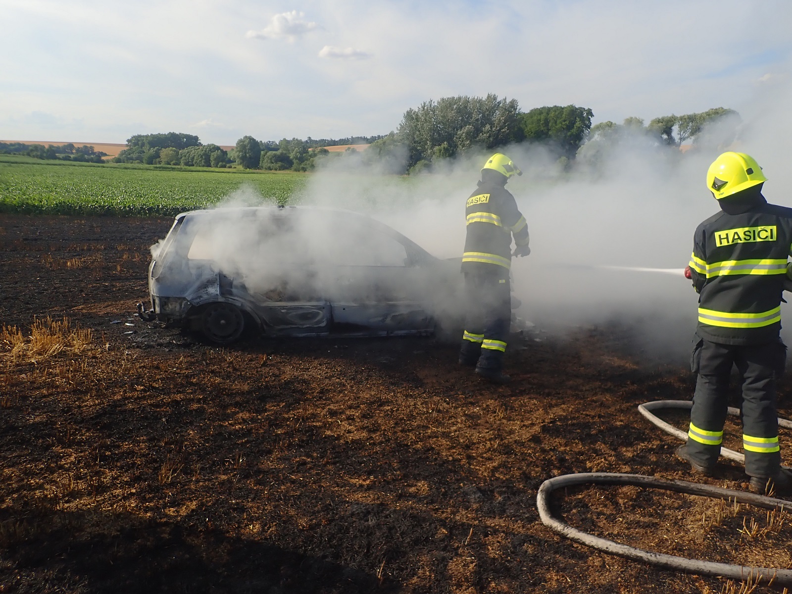 Řidič hořícího automobilu sdělil, že si vyjel sbírat hřiby a přes pole si chtěl zkrátit cestu. Během jízdy po strništi však automobil začal hořet.