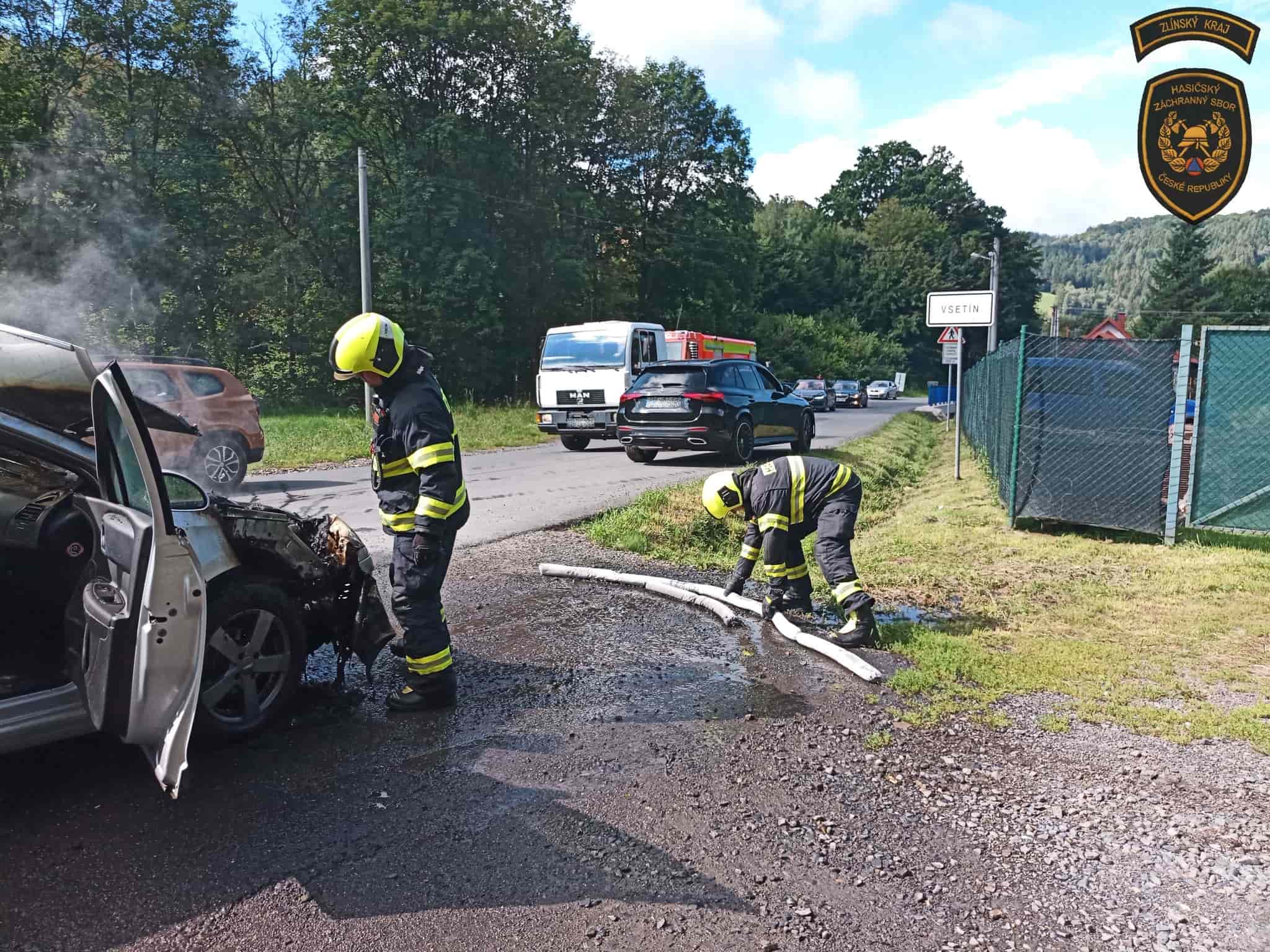 Z běžné jízdy se během okamžiku stala nebezpečná situace. V motorové části osobního auta za jízdy vyšlehl požár. Díky duchapřítomnosti posádky se událost obešla bez zranění. Hasiči zasáhli rychle a zabránili větším škodám.