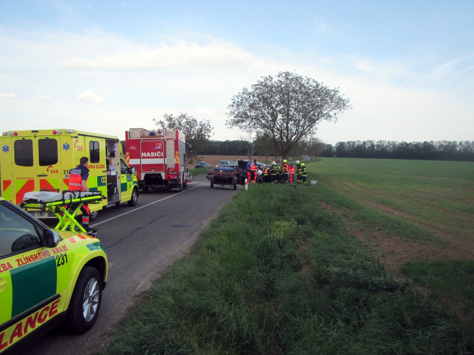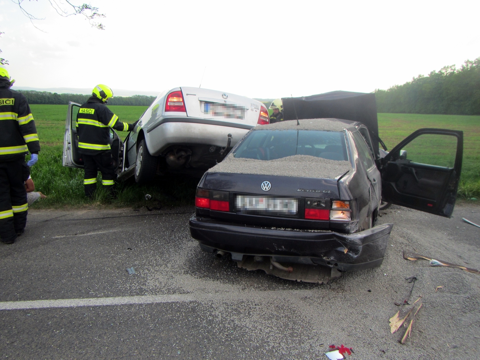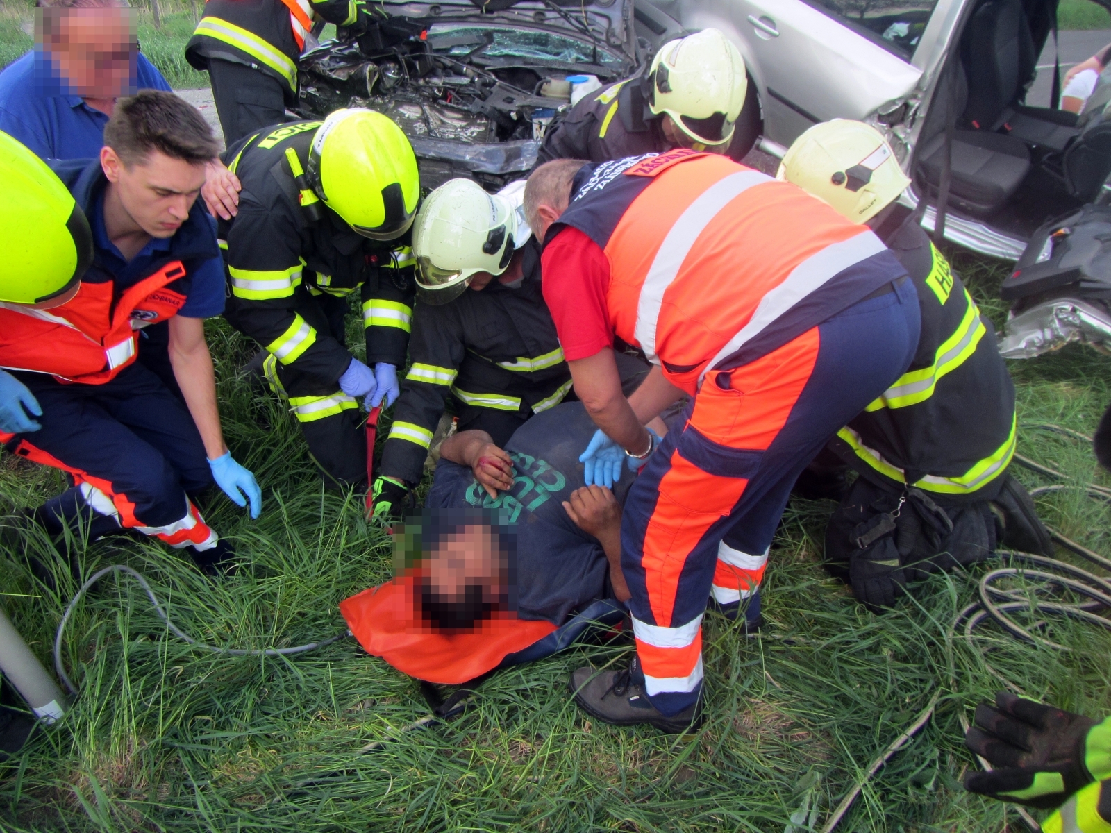 Hasiči společně vyprostili zaklíněného a obě osoby z prvního vozu si převzala do své péče přivolaná posádka zdravotnické záchranné služby. Řidič z druhého vozu byl po prvotním ošetření transportován do nemocnice letecky.