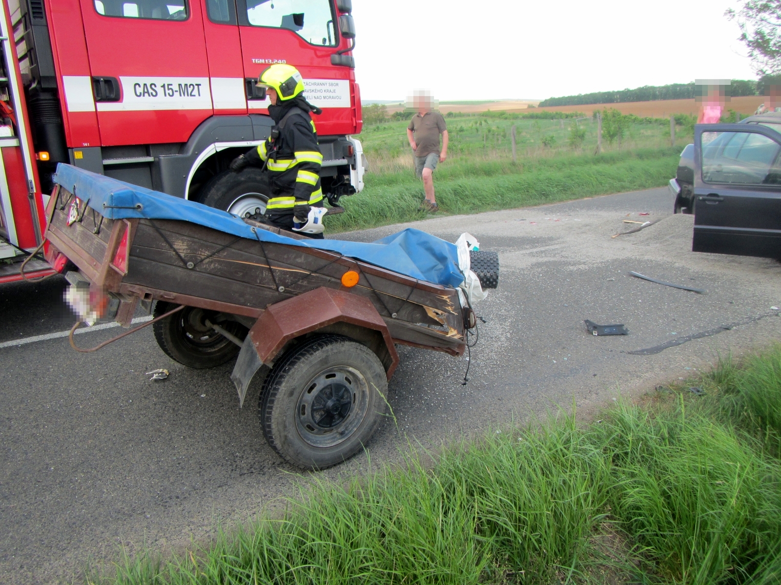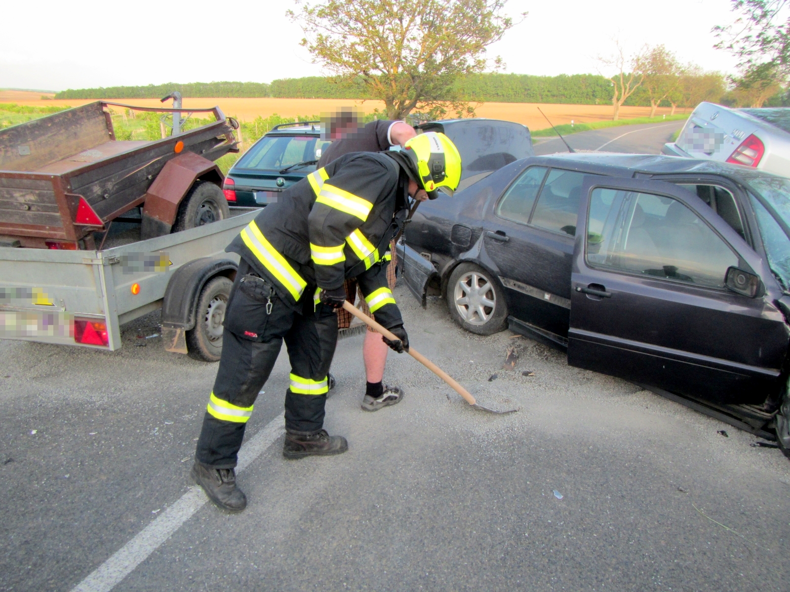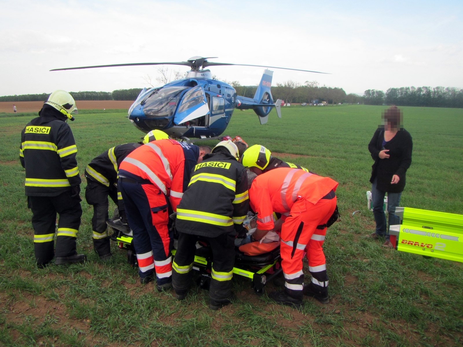 Hasiči společně vyprostili zaklíněného a obě osoby z prvního vozu si převzala do své péče přivolaná posádka zdravotnické záchranné služby. Řidič z druhého vozu byl po prvotním ošetření transportován do nemocnice letecky.
