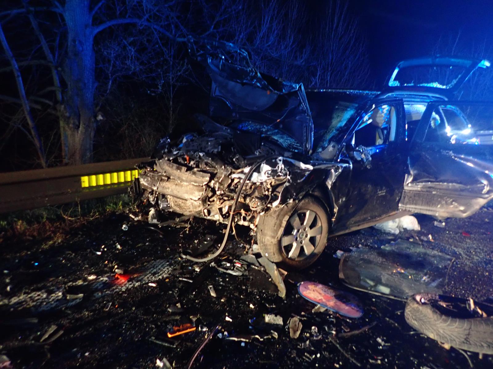 Ve vozidle Citroën Xsara jely dvě ženy s malým dítětem. Spolujezdkyně utrpěla zranění, kterým na místě podlehla. Řidička s dítětem byla převezena do nemocnice. Ve druhém vozidle tovární značky Škoda Octavia byla těžce zraněna spolujezdkyně, pro kterou přiletěl vrtulník. V nemocnici skončil i řidič vozidla a malé miminko, kterému hasiči věnovali dráčka Záchranáčka. Hasiči asistovali při prováděné resuscitaci zraněných a poskytovali první pomoc se zdravotnickou záchrannou službou. Taktéž zajistili na místě několika lidem posttraumatickou péči.