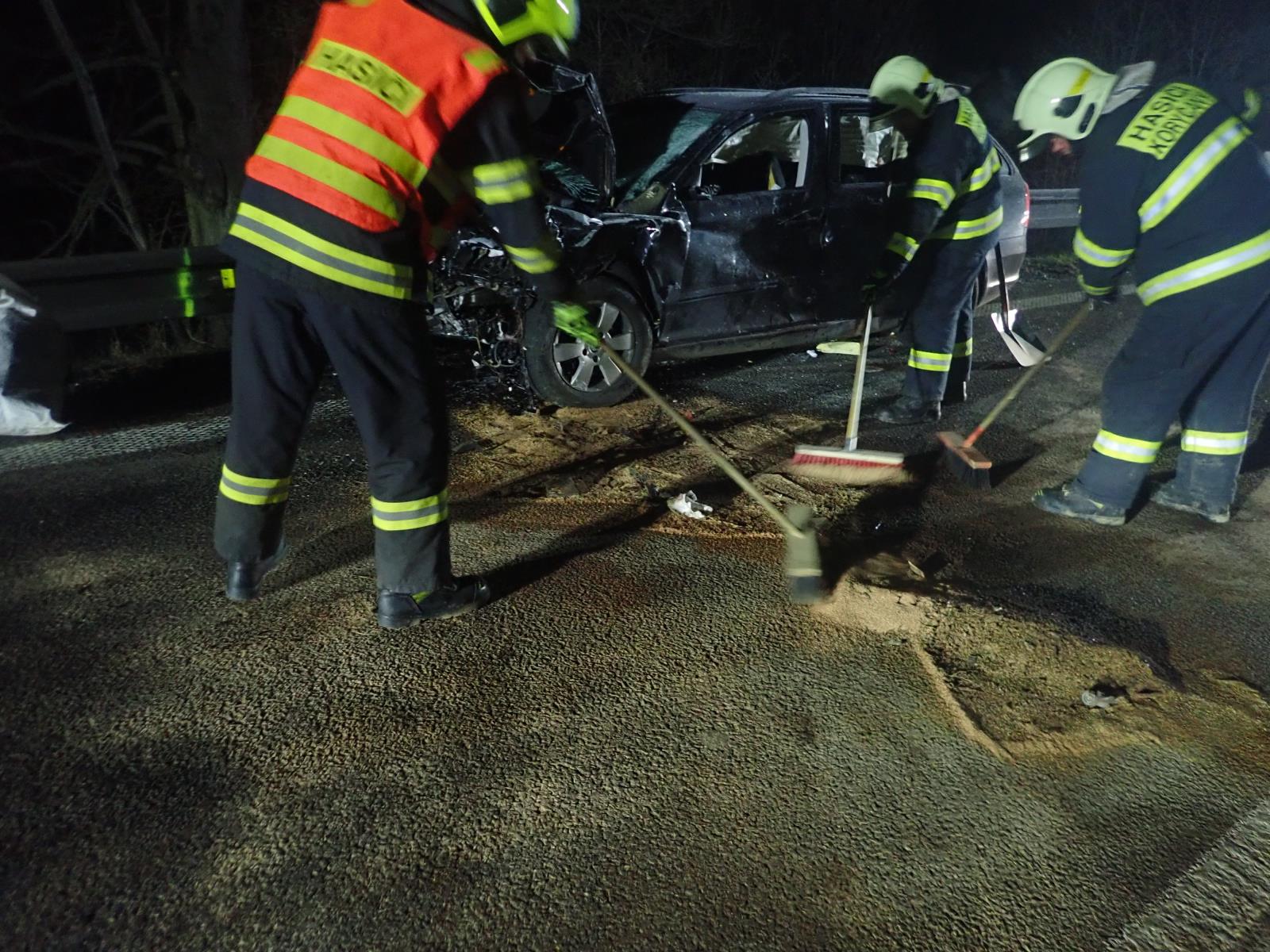 Hasiči po celou dobu osvětlovali místo nehody. U vozidel provedli protipožární opatření a odpojili autobaterii. Po střetu došlo k velkému úniku provozních kapalin, které hasiči zasypali sorbentem. Až nad ránem, kdy bylo ukončeno vyšetřování ze strany Policie ČR, pomohli hasiči s naložením vraků na odtahový vůz. Poté uklidili vozovku od střepů a úlomků, které se nacházely na desítkách metrech komunikace i jejího okolí. Provoz na silnici byl obnoven ve středu krátce před půl šestou ranní.