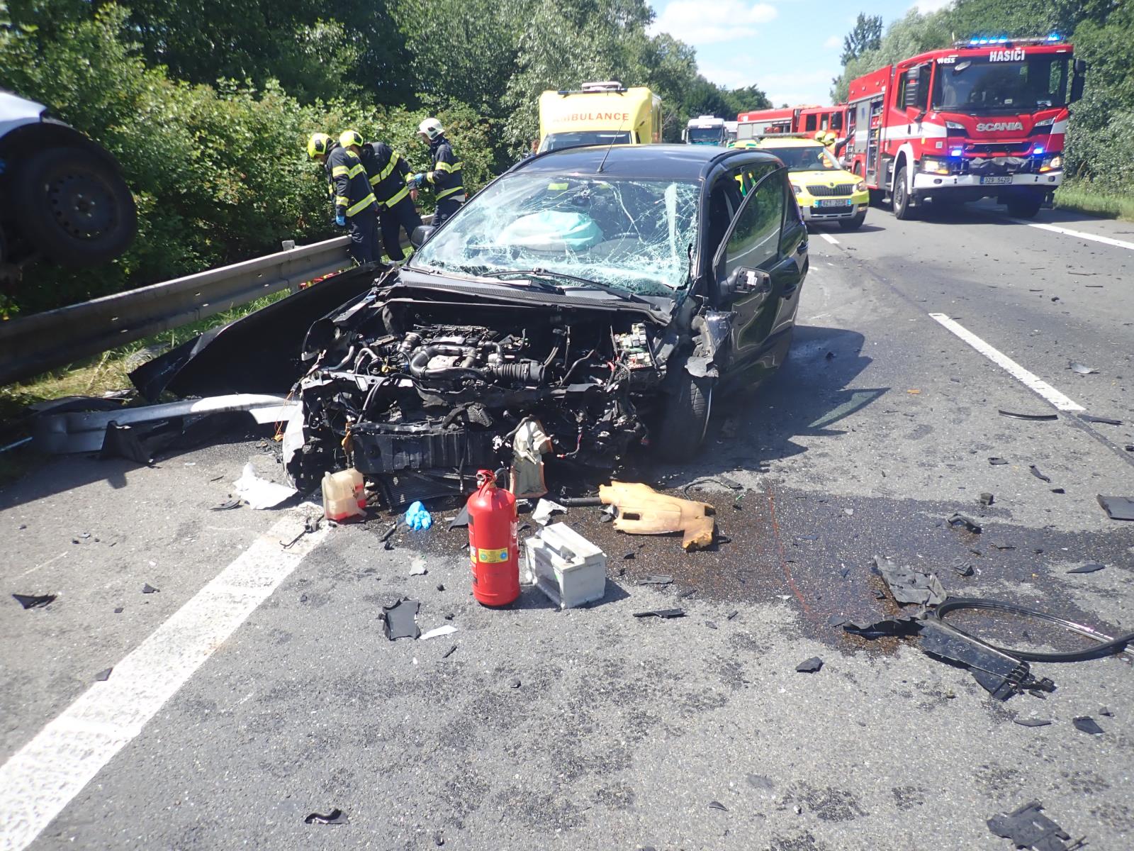 Jakmile to okolnosti dovolily, pomohli hasiči s naložením aut na odtahový vůz a poté uklidili vozovku.