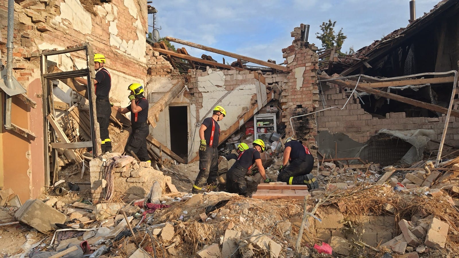 Na místě zůstali profesionální hasiči z Kroměříže, ze Zlína, USAR tým a Záchranný útvar HZS ČR, kteří postupně rozebírají trosky domu pomocí pásového rypadla z Hlučína a další techniky, aby vyloučili možnou přítomnost další osoby v sutinách. Hasiči také provádí úklid ve velké části ulice, protože trosky se nacházejí i ve vzdálenosti 50 m. Lze předpokládat, že likvidační práce budou probíhat do pozdních nočních hodin. Psychologickou pomoc pozůstalým a kolegům zemřelých poskytují psychologové a interventi HZS ČR a Policie ČR.