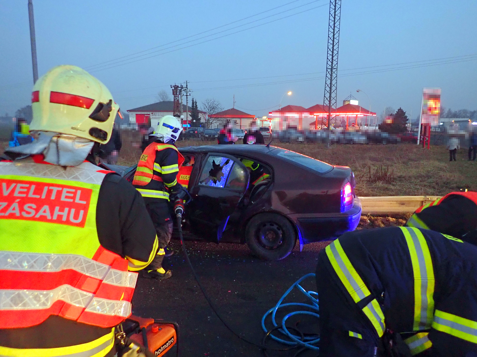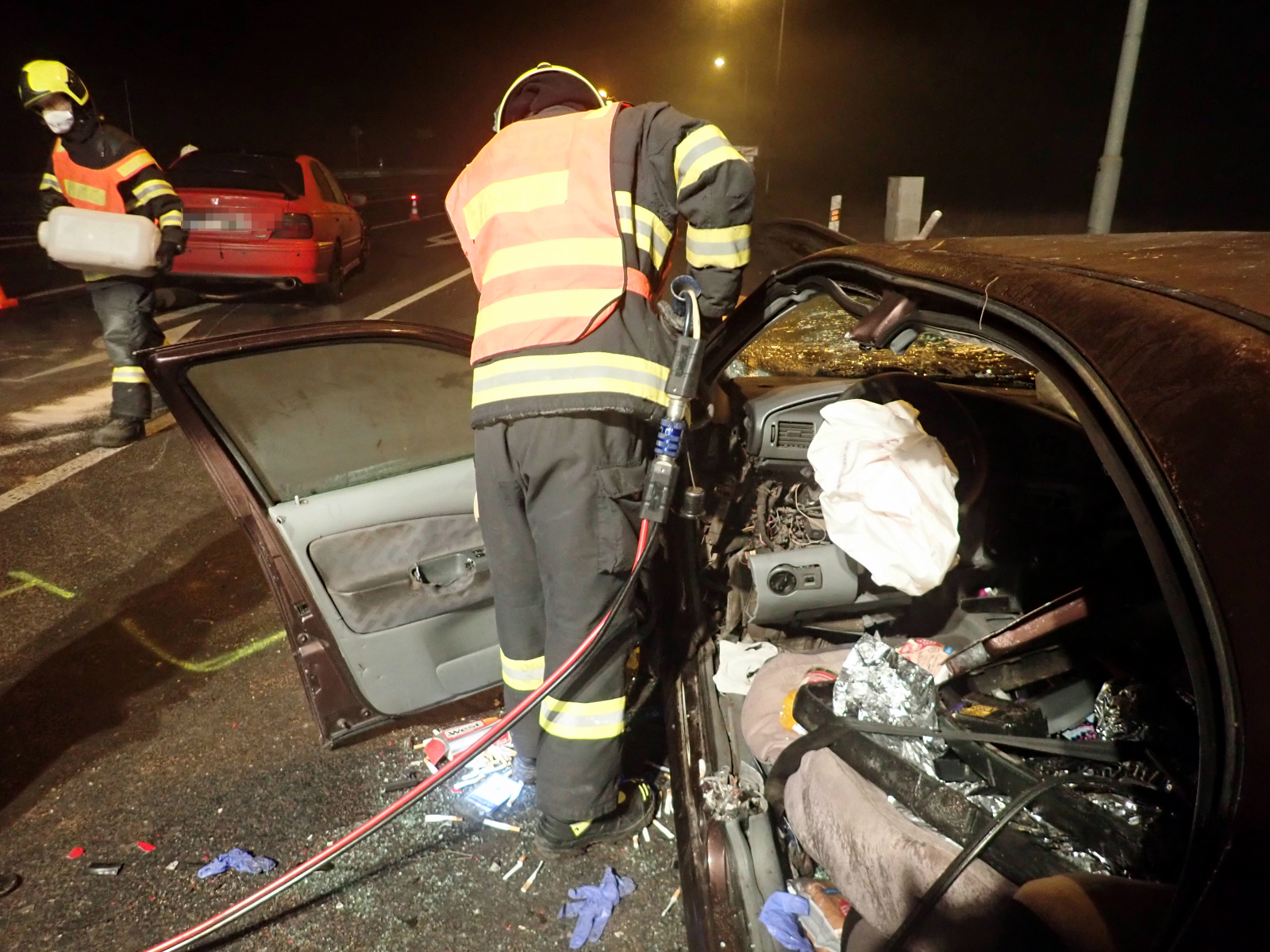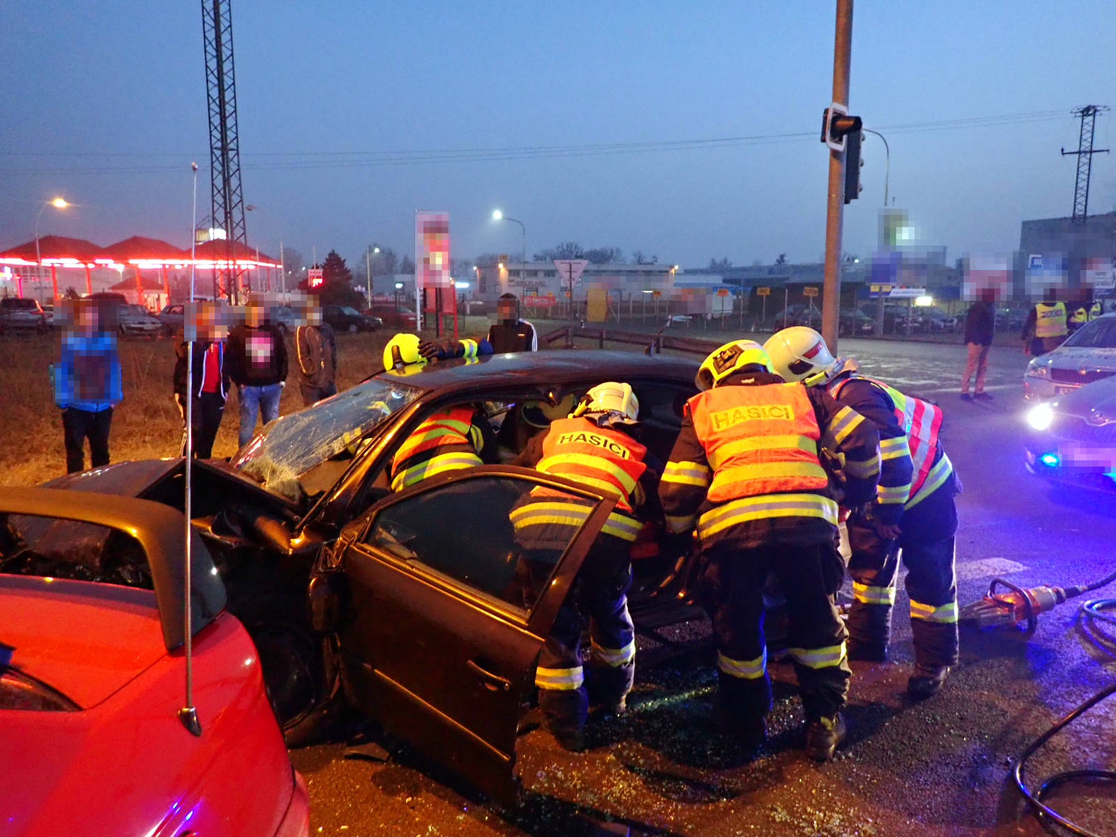 Tři osoby hasiči vyprostili u těžké dopravní nehody v Kroměříži