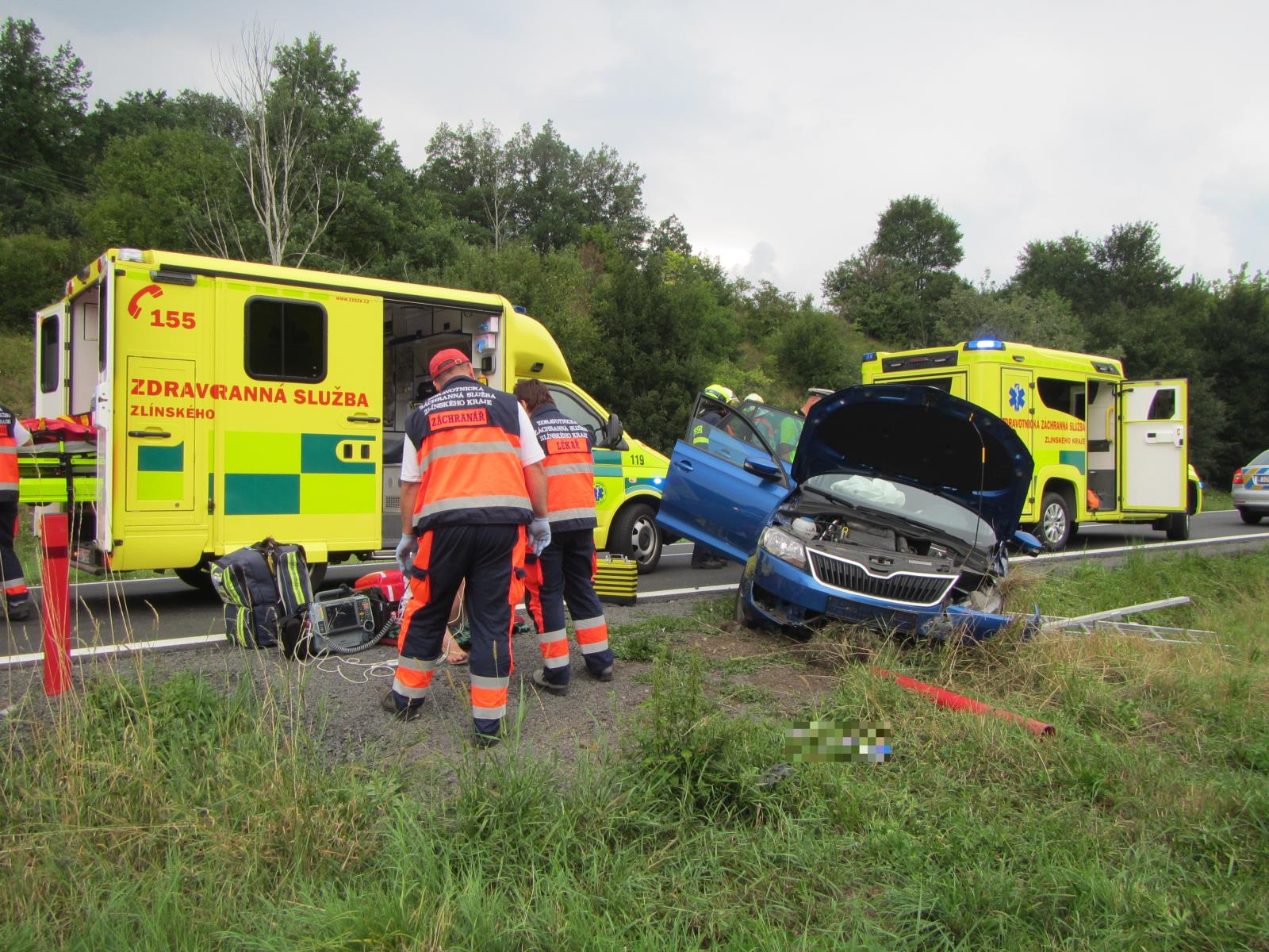 Operační důstojník do místa nehody vyslal profesionální hasiče ze stanice Zlín a dobrovolné hasiče z Vizovic. Po příjezdu na místo hasiči zjistili, že zde havarovala řidička osobního vozidla. Ta s autem vjela do příkopu, ve