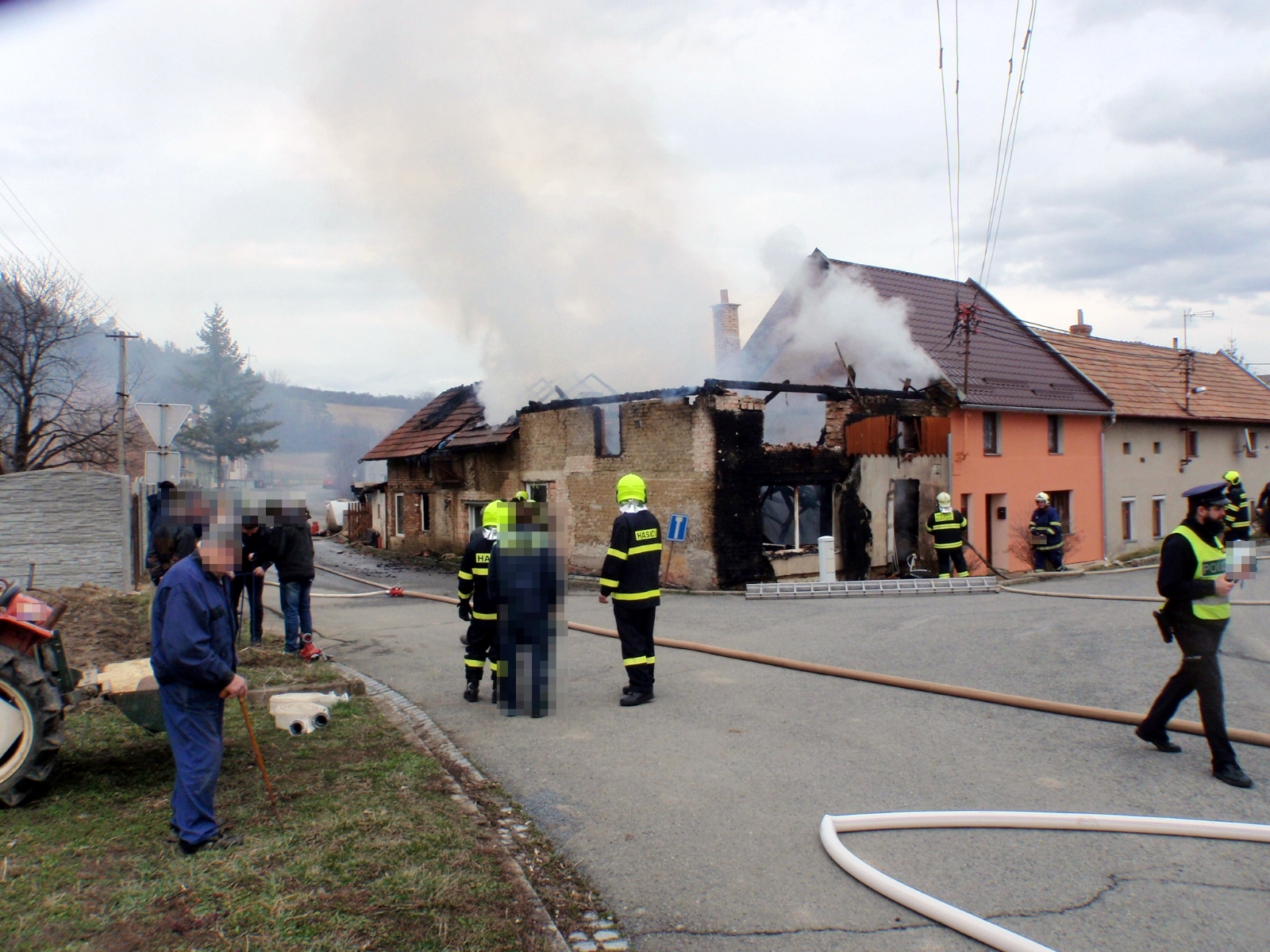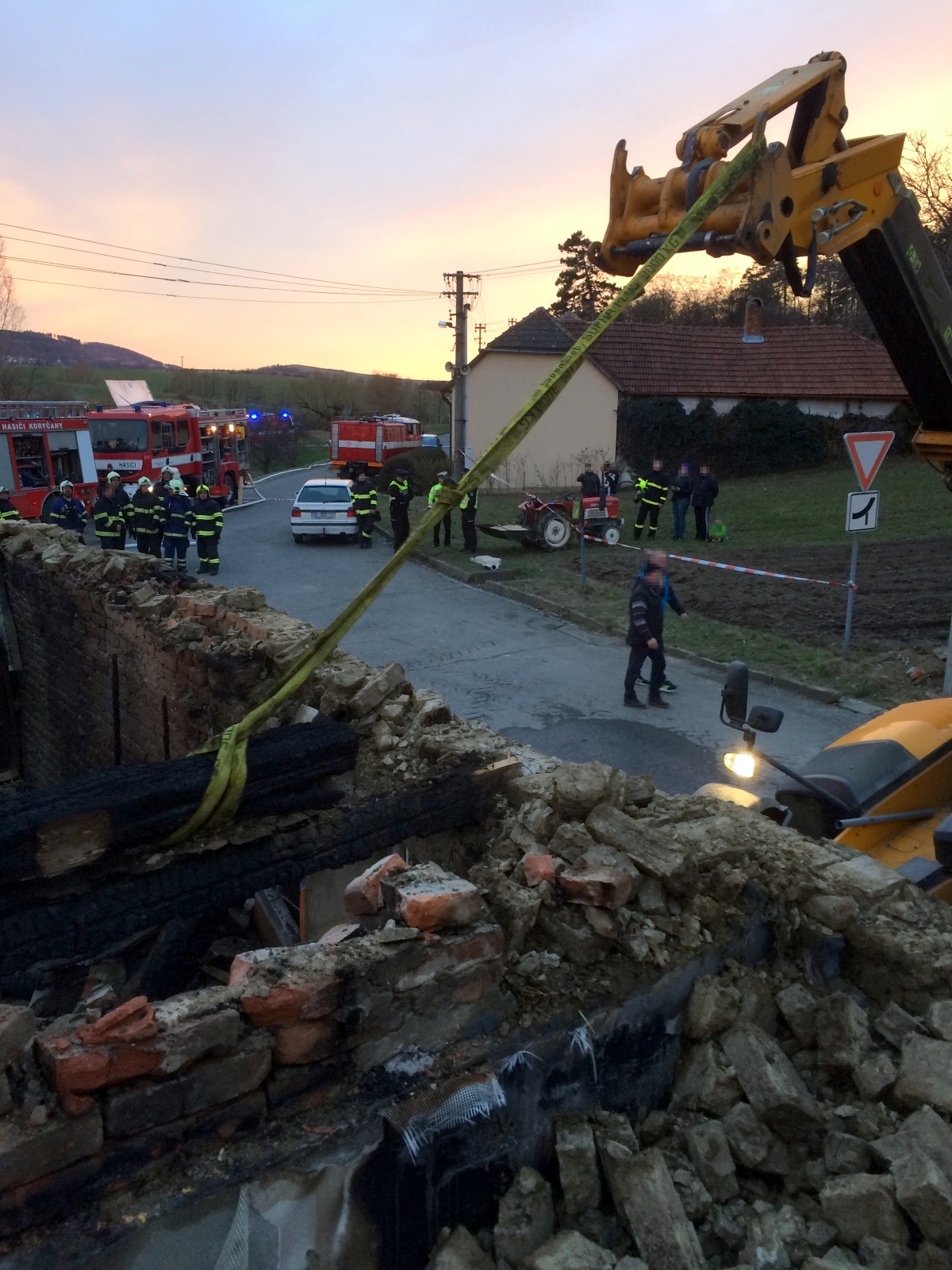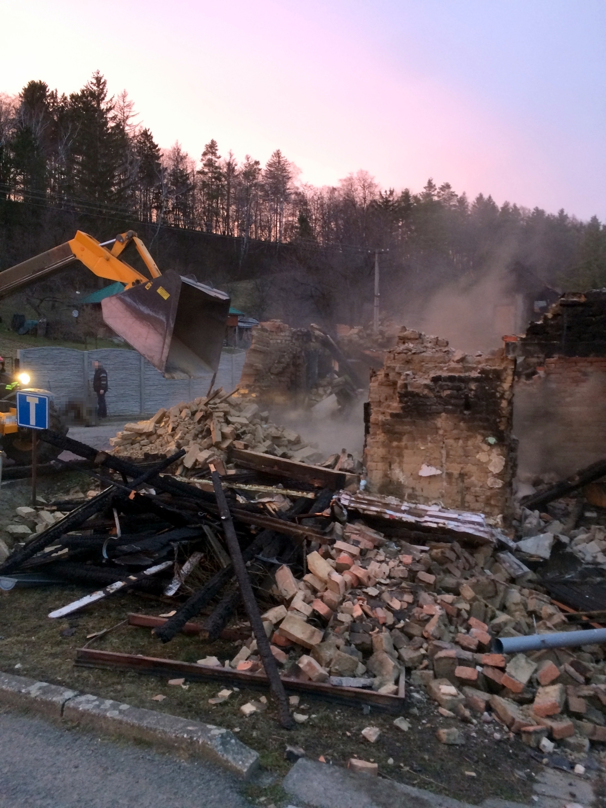 Statik po prohlídce zničené budovy rozhodnul o jejím postupném stržení. Starosta obce proto zajistil stavební stroj, kterým byly za přítomnosti majitelů zasaženého i sousedního objektu demoliční práce okamžitě provedeny. Po jejich dokončení byl realizován závěrečný průzkum a kontrola sousedních budov termokamerou. Místo události bylo následně předáno starostovi obce a jednotky se krátce před sedmou hodinou večerní vrátily zpět na své základny. Na dohlídku nad požářištěm zůstává pouze místní jednotka.