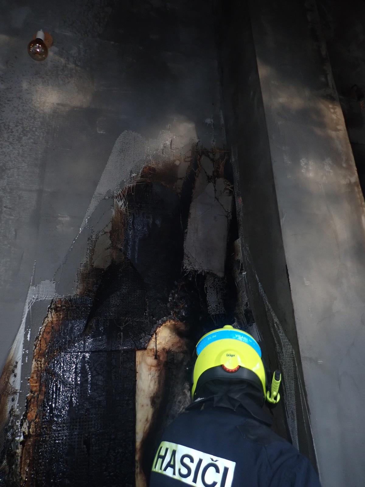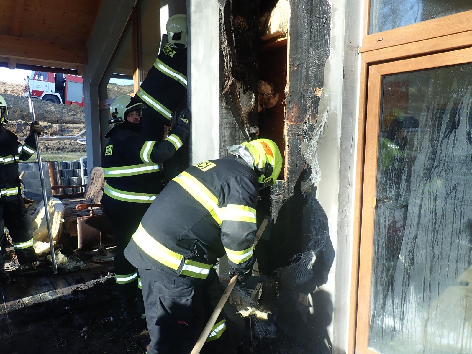 Měřením stavebních konstrukcí jsme zjistili, že konstrukce stěny u komína má vysokou teplotu. Stěnu jsme museli rozebrat na výšku asi 3 metrů. Požár byl uhašen v 9:33 hodin.