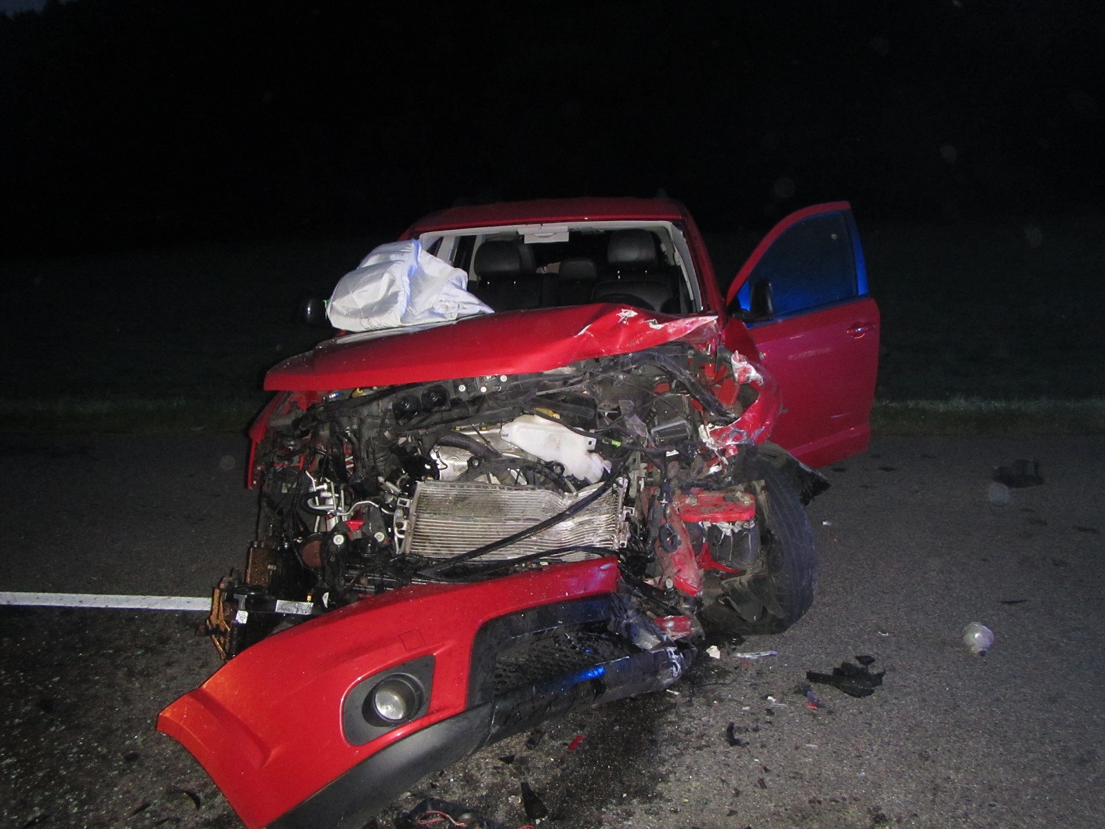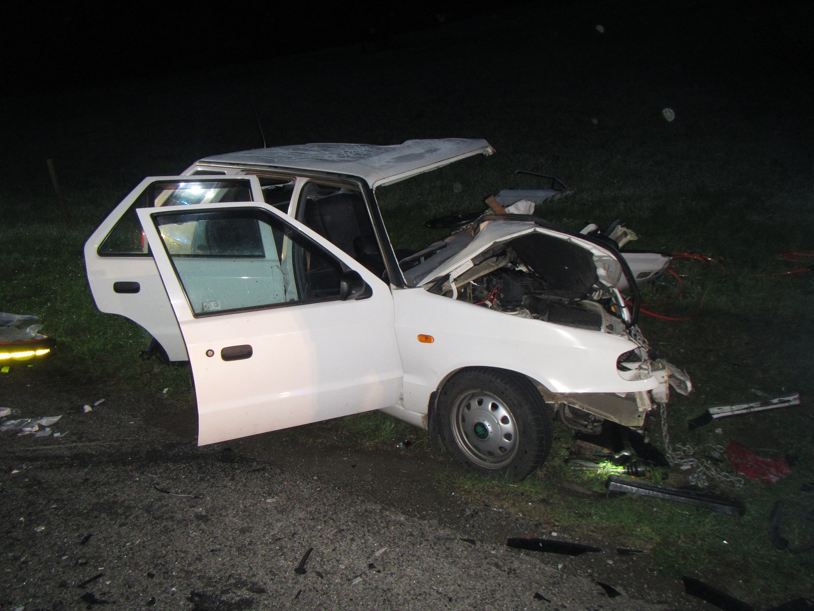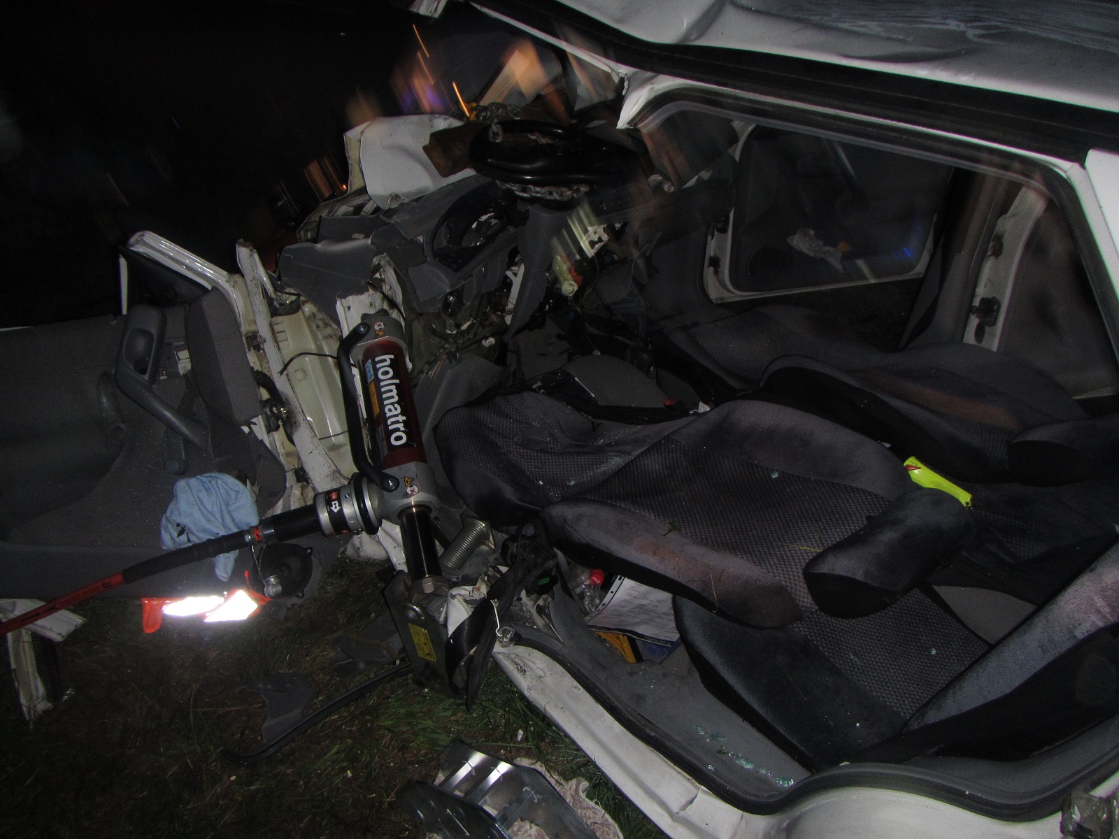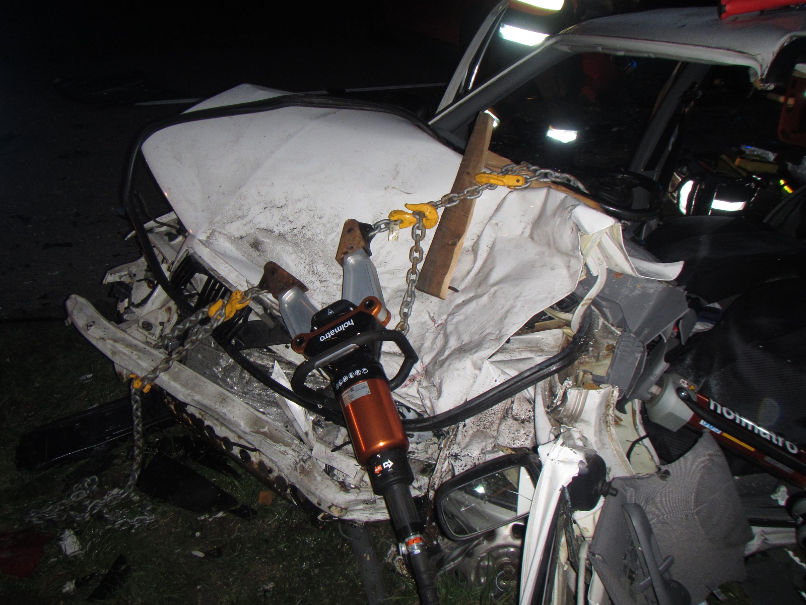 V době příjezdu hasičů byla u nehody Policie České republiky a zdravotnická záchranná služba. Osobní vozidla Škoda a Fiat blokovaly celou šířku silnice. Ve voze Škoda byl zaklíněný řidič. Jeho spolujezdec už byl v péči zdravotníků. Hasiči řidiče vyprostili s hydraulickým vyprošťovacím zařízením a na páteřní desce ho předali zdravotníkům.
