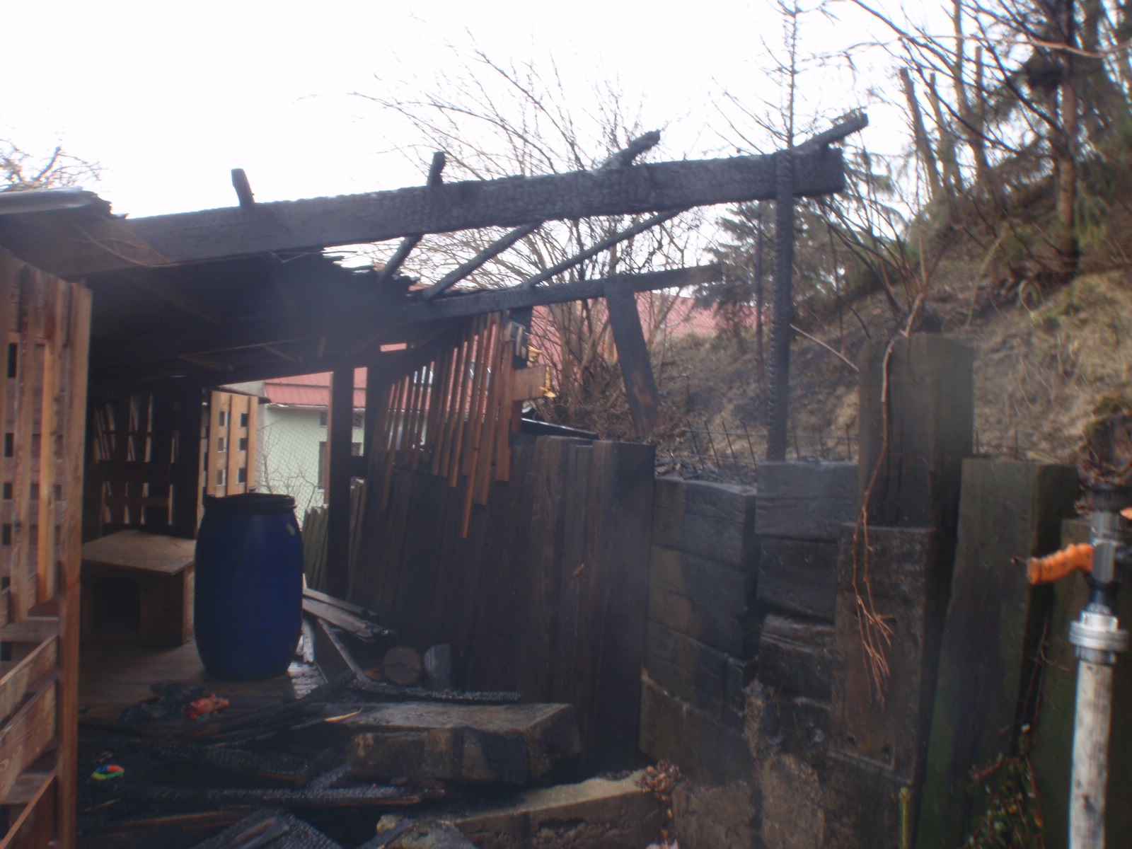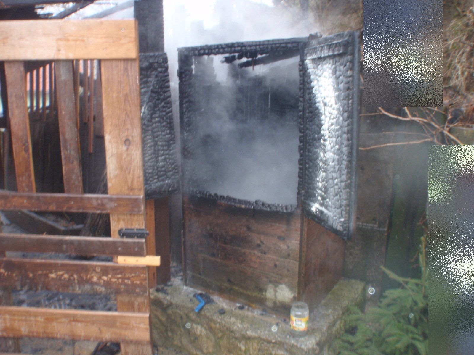 Průzkumem bylo zjištěno, že hořela dřevěná udírna u rodinného domu. Udírna byla uhašena jedním hasicím přístrojem příslušníkem hlídky policie ještě před příjezdem hasičů. K dohašení použili hasiči jeden proud vody.