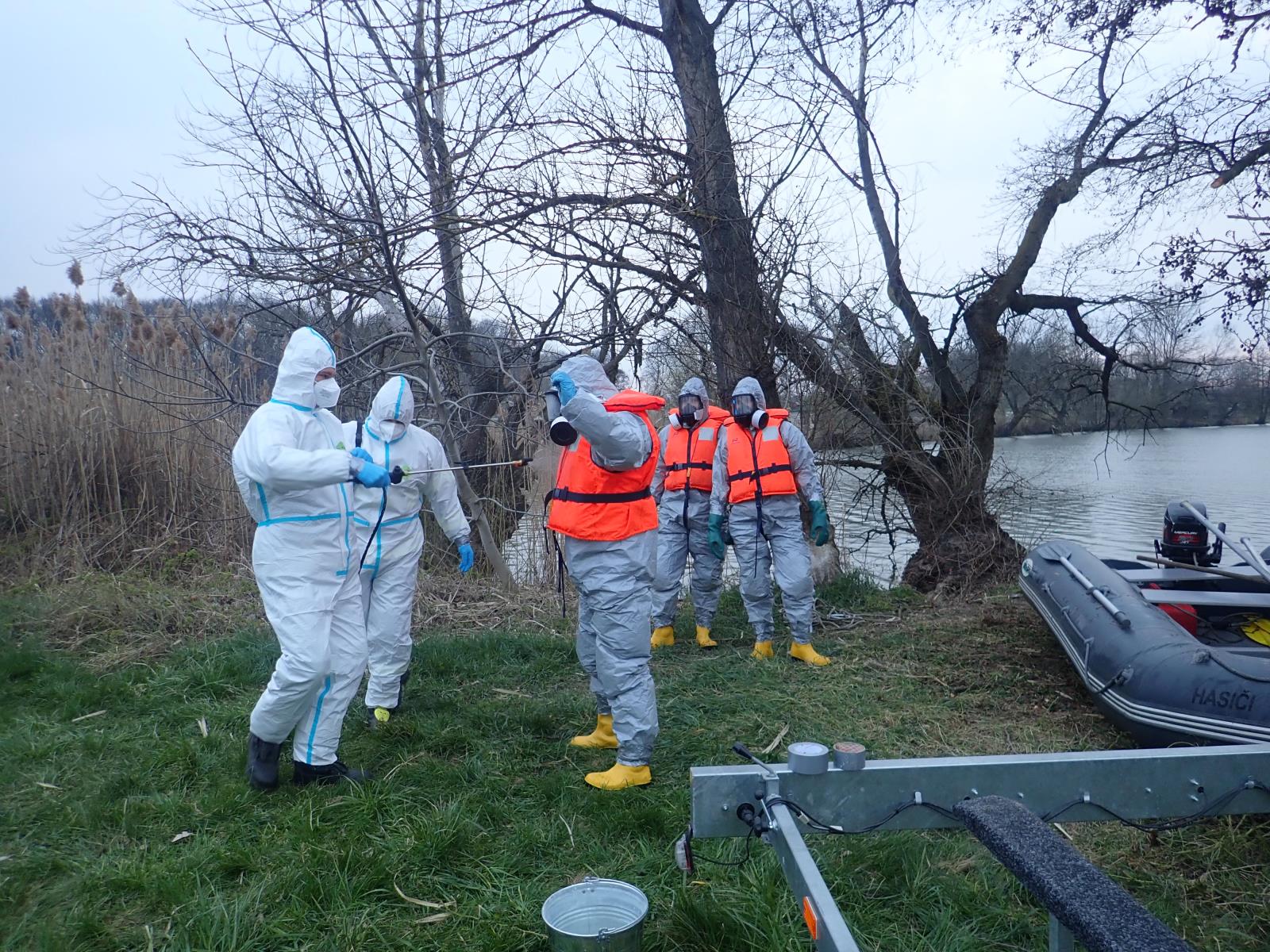 Hasiči až do tmy posbírali 120 kusů kadáverů z břehu rybníku. Těla ptáků umístili do pytlů, které následně ošetřili desinfekcí a poté je vložili do kontejneru. Se setměním hasiči práci na místě události ukončili a na dekontaminačním stanovišti očistili zasahující hasiče a věcné prostředky, které použili při sběru těl zvířat.