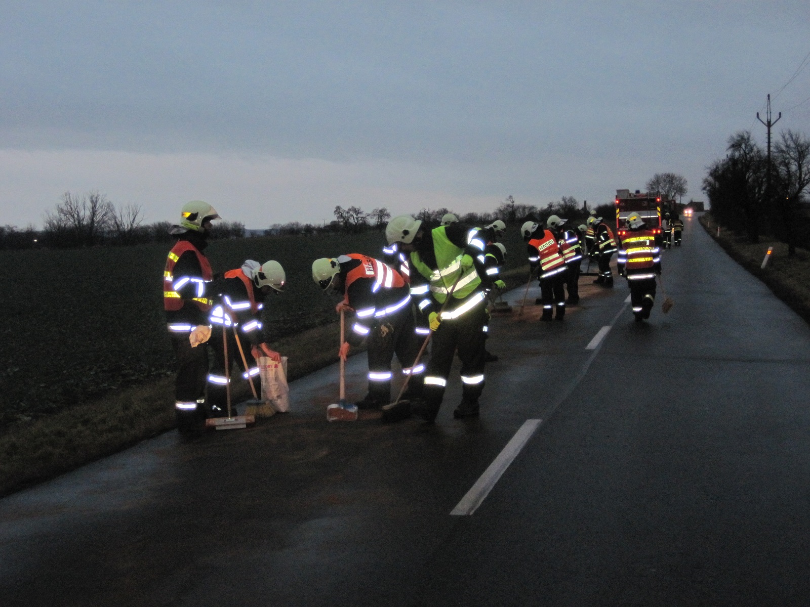Hasiči spotřebovali na úklid znečištěné silniční komunikace v délce asi 5 kilometrů celkem 240 kilogramů sypké sorpční látky. Úklid silnice byl ukončen v 16:51 hodin.