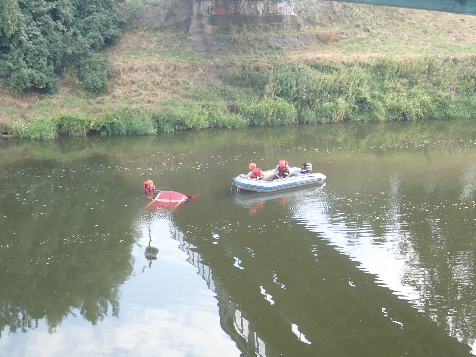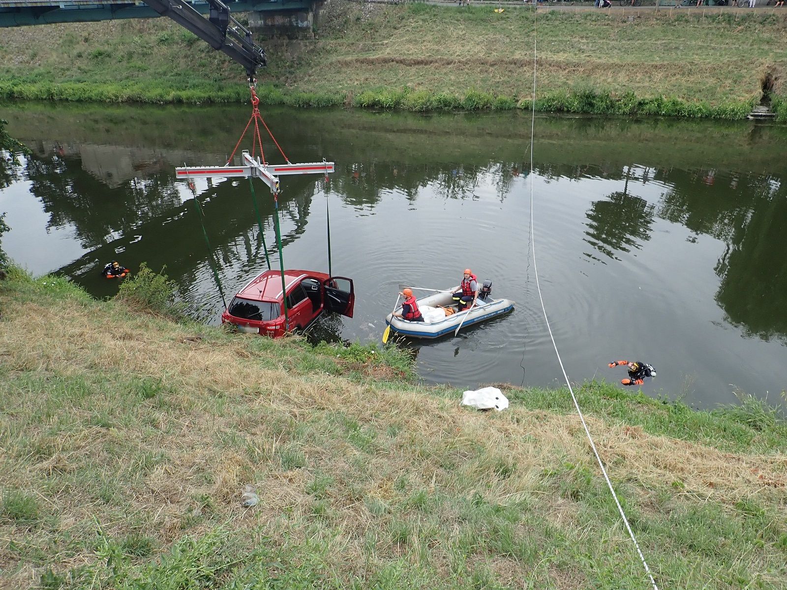 Po příjezdu potápěčů byl dohodnut způsob vyproštění vozidla s pomocí vyprošťovacích vaků. S pomocí vaků byl automobil nadzvižen a přitažen k břehu řeky. Následně bylo auto vytaženo vyprošťovacím automobilem na silniční komunikaci, kde bylo dále naloženo na vůz odtahové služby.