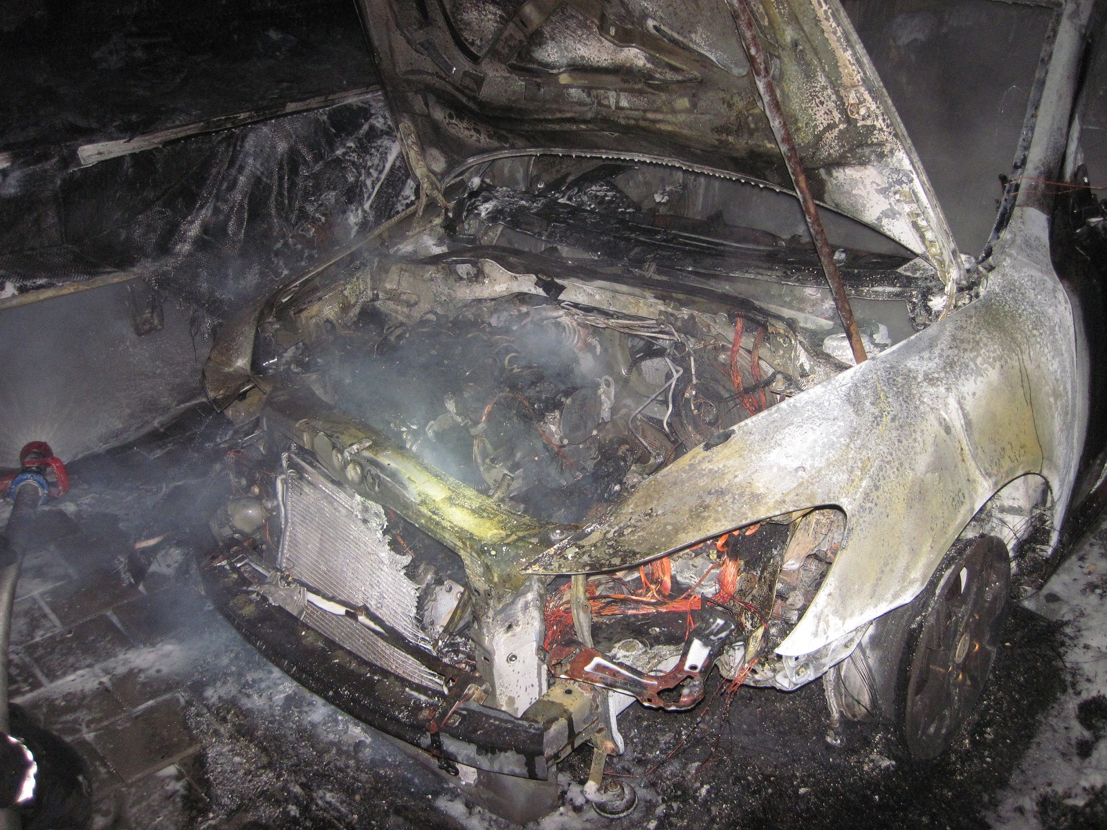Po příjezdu hasiči zjistili, že hoří nákladní prostor nákladního vozu Volkswagen a motorový prostor osobního vozidla Škoda. Hasiči požár uhasili s jedním vysokotlakým proudem vody a jedním útočným proudem C.