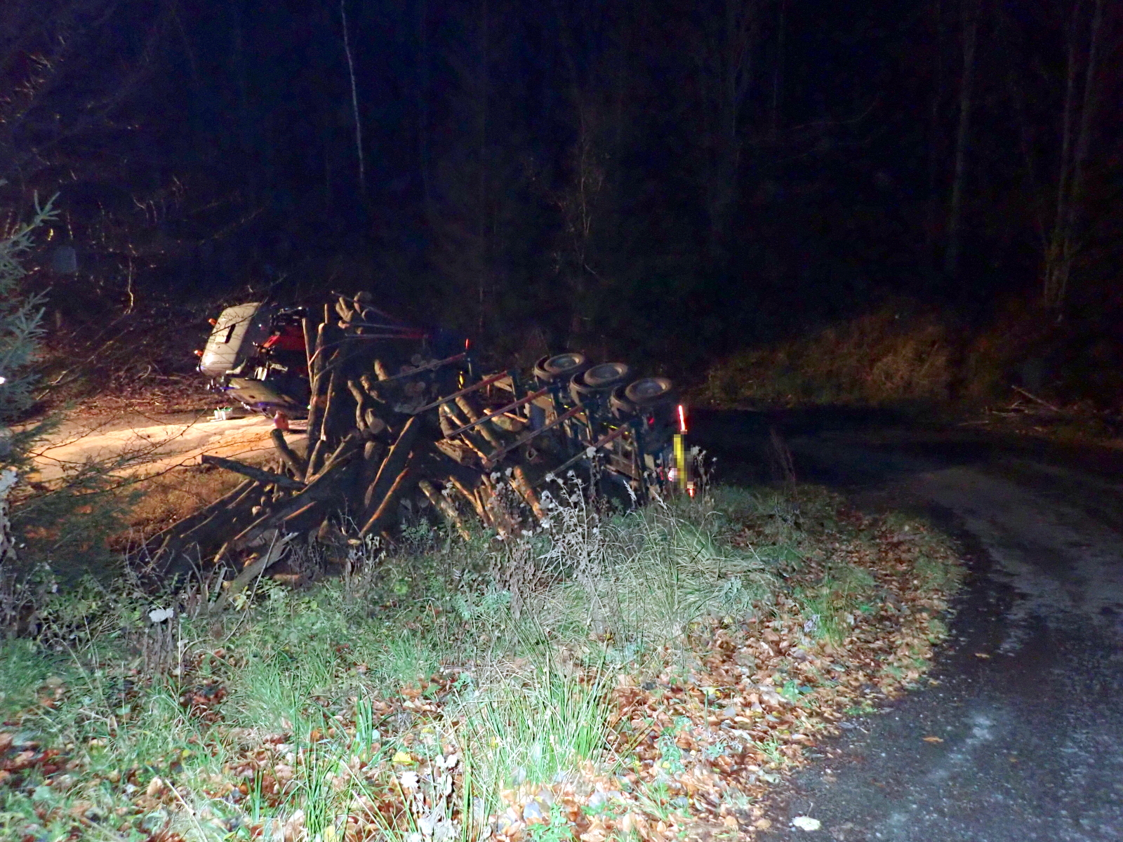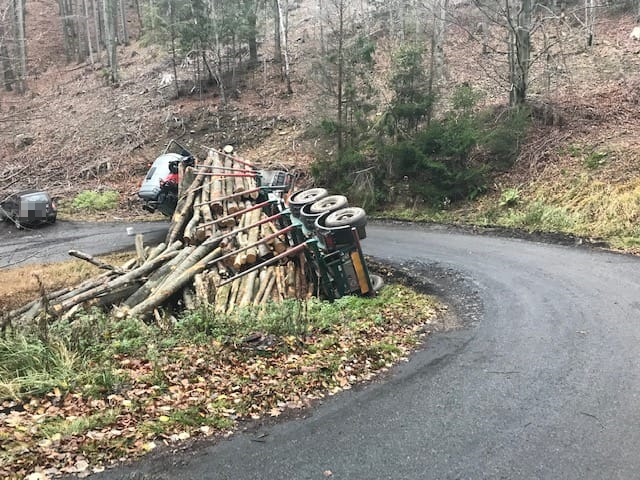 (22. 11. 2019) Krátce před pátou hodinou odpolední došlo v prudké zatáčce na zpevněné komunikaci nedaleko obce Rajnochovice k dopravní nehodě nákladní soupravy se dřevem. K události byla v 17:07 hodin vyslána jednotka profesionálních hasičů ze stanice Bystřice pod Hostýnem.