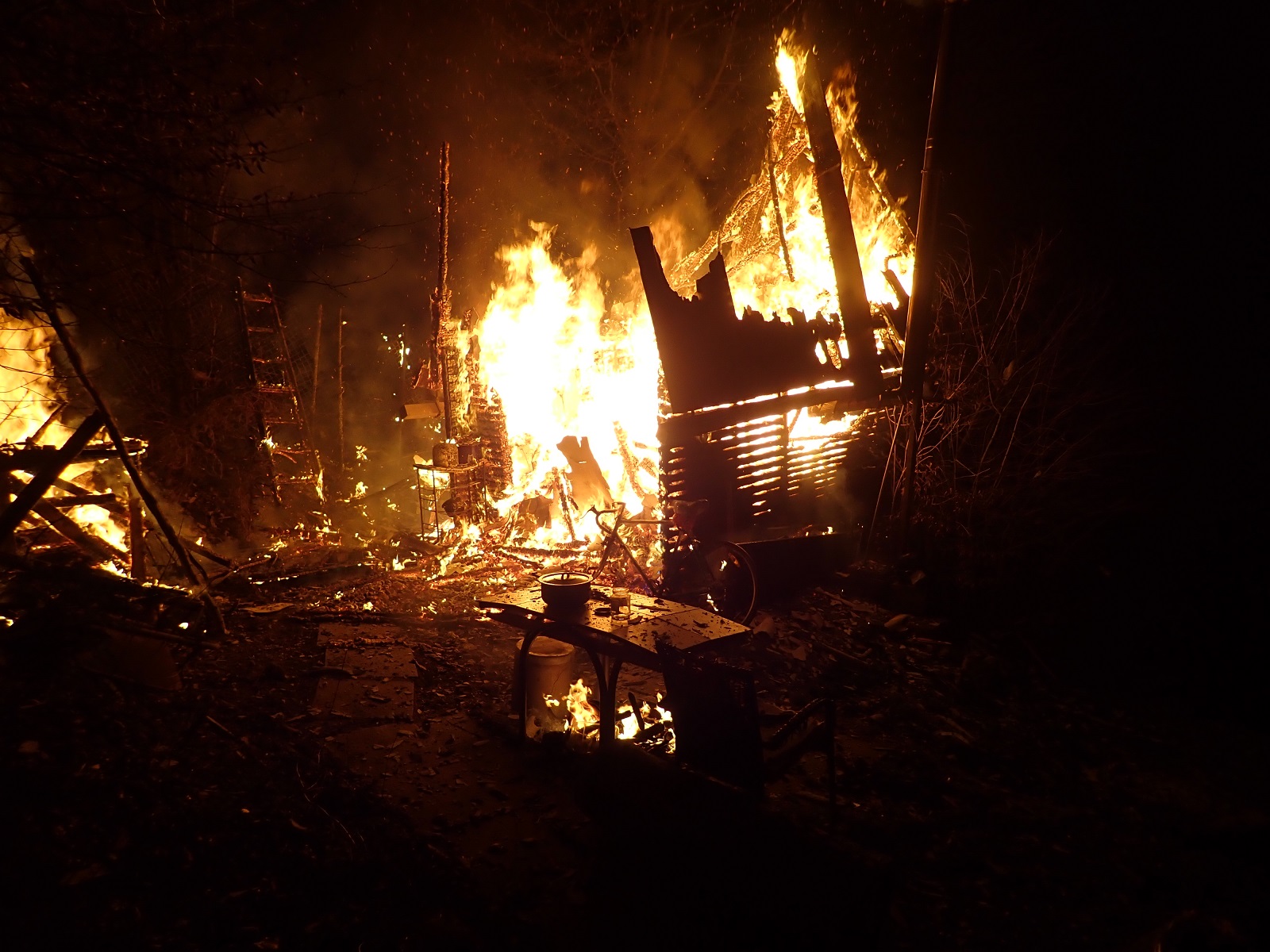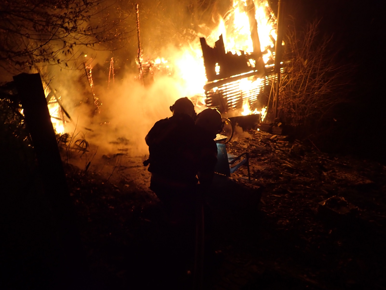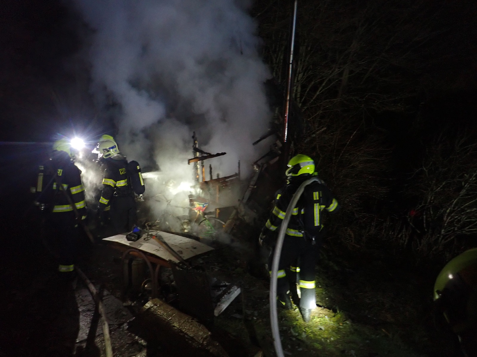 V době našeho příjezdu byla chata celá v plamenech. Na místě byla Policie České republiky. Zasahovali jsme v dýchacích přístrojích s dvěma útočnými proudy vody C. Po uhašení požáru jsme požářiště prohledali. Žádnou osobu jsme nenalezli.