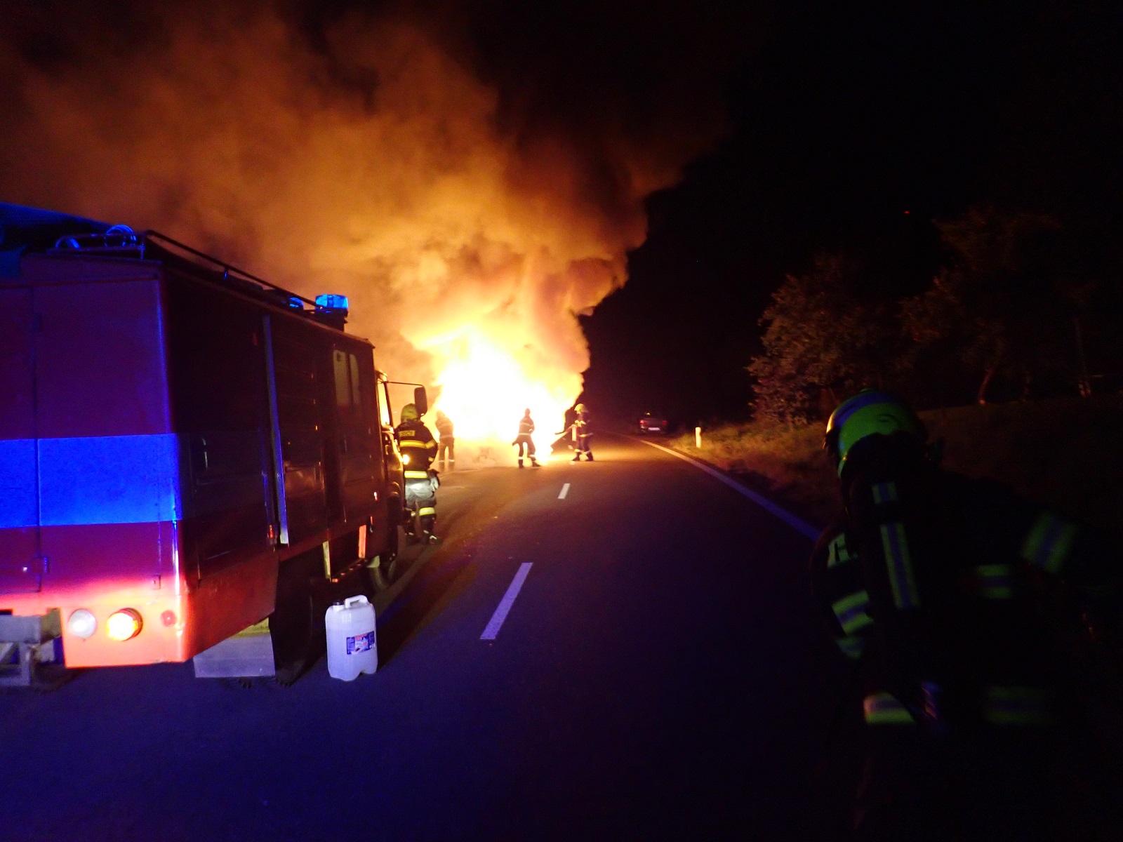 Řidička uvedla, že ji na nějaký problém upozornili problikáním protijedoucí řidiči. Ve středu obce proto automobil zastavila. Automobil ale začal okamžitě hořet. Ještě před příjezdem hasičů u ní zastavila řidička, která zapůjčila hasicí přístroj k hašení.