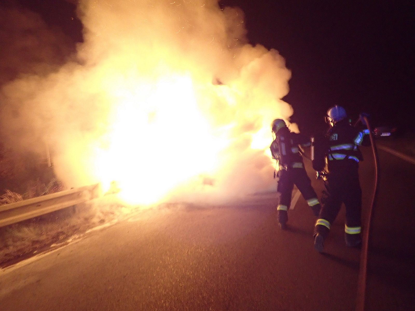 K hořícímu automobilu přijela jako první místní jednotka, která zahájila hasební práce se dvěma hasicími přístroji. Profesionální hasiči následně požár uhasili jedním vysokotlakým proudem vody.