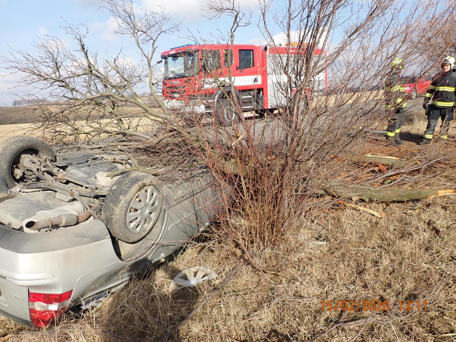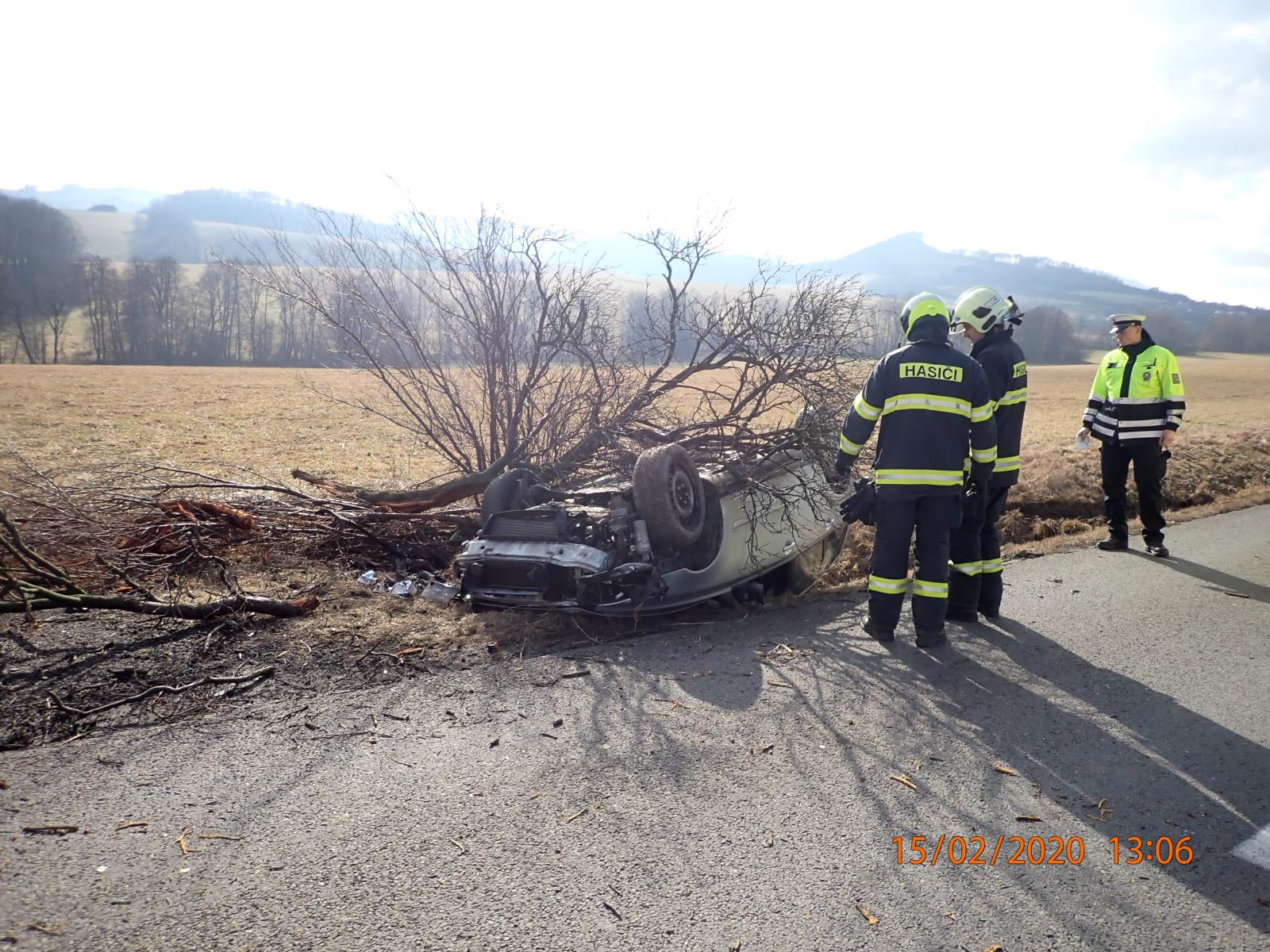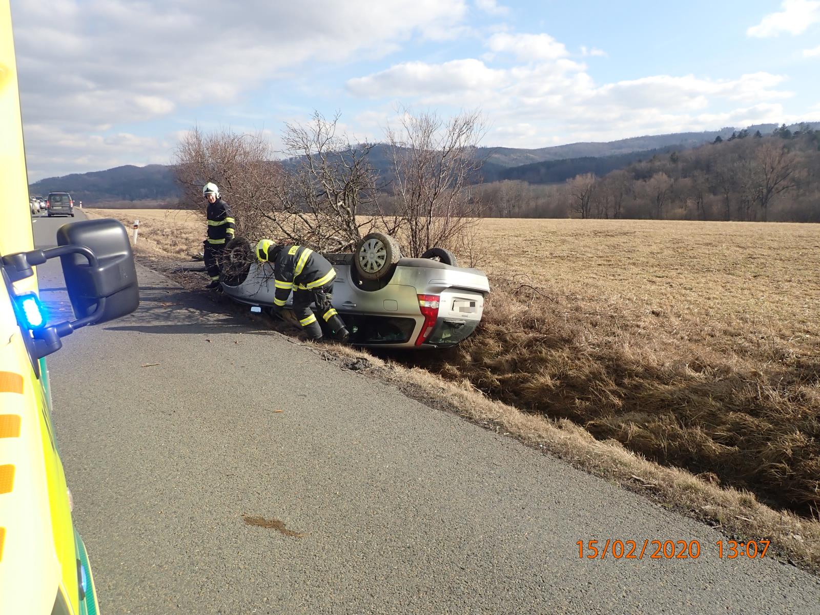 V sobotu vyjížděli hasiči taktéž ke dvěma nehodám. Krátce po poledni byli vysláni do obce Police na Vsetínsku k nehodě dvou osobních aut. Jedno z nich skončilo na střeše. Druhá nehoda se stala taktéž na Vsetínsku, a to v obci Hovězí.