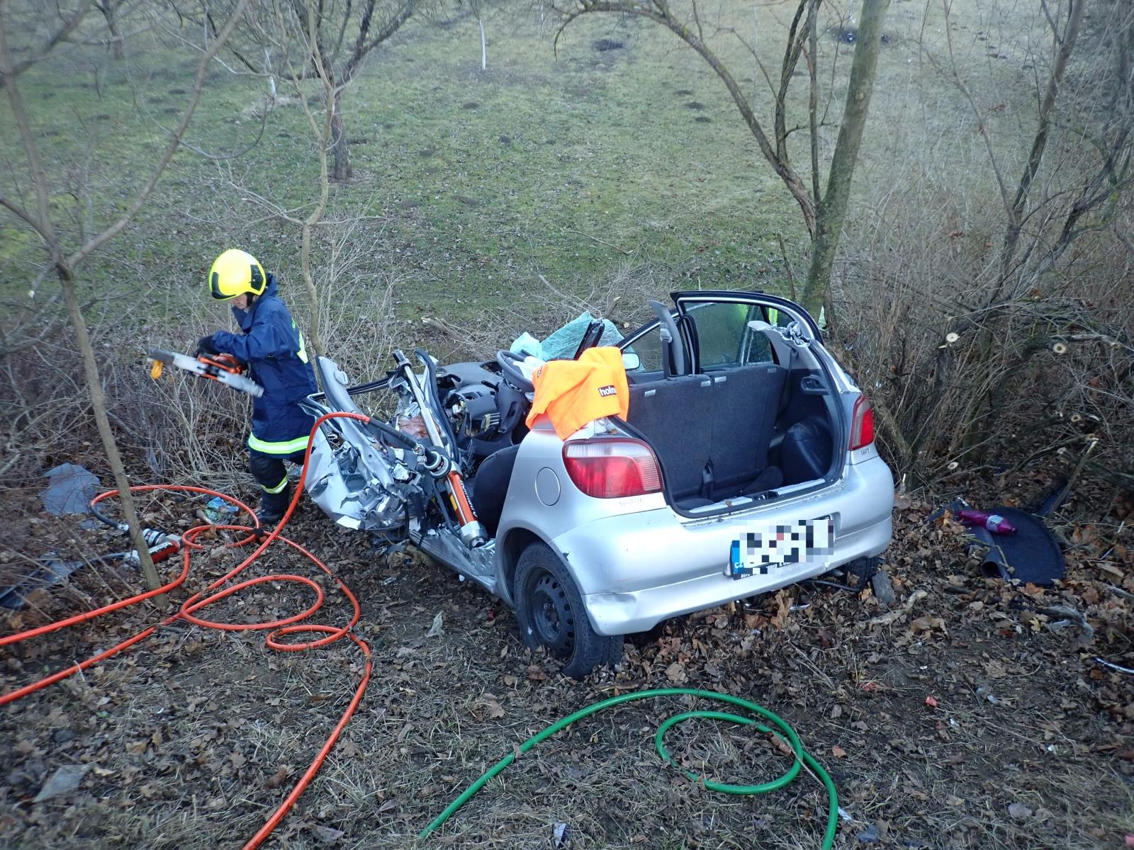 Šest minut po půl sedmé ranní měli vyhlášený poplach profesionální hasiči ze stanice Uherské Hradiště. Ti po příjezdu na místo nehody průzkumem zjistili, že se jedná o střet dvou osobních vozidel. Po nárazu vozidlo Škoda Superb zůstalo na silnici. Řidič s lehčím zraněním byl převezen do nemocnice. Podstatně hůře však skončila řidička druhého vozu, a to Toyoty Yaris, který sjel do příkopu vedle silnice. Při střetu bylo vozidlo značně zdeformované. Řidička utrpěla velmi vážná zranění a zůstala uvnitř auta zaklíněná. Hasiči po svém příjezdu ihned zahájili vyprošťování. Celý zásah byl komplikován špatným terénem. Hasiči si museli odřezat dřeviny okolo vozidla. Samotné vyproštění bylo velmi náročné. K co nejšetrnějšímu vytažení zraněné bylo nutné použít hydraulické vyprošťovací zařízení a k tomu mnoho dalších prostředků, aby ženu co nejrychleji dostali ven z vozu do péče posádky zdravotnické záchranné služby. Po dlouhých minutách zásahu včetně odřezání střechy vozidla vytáhli hasiči s pomocí páteřové desky řidičku ven.