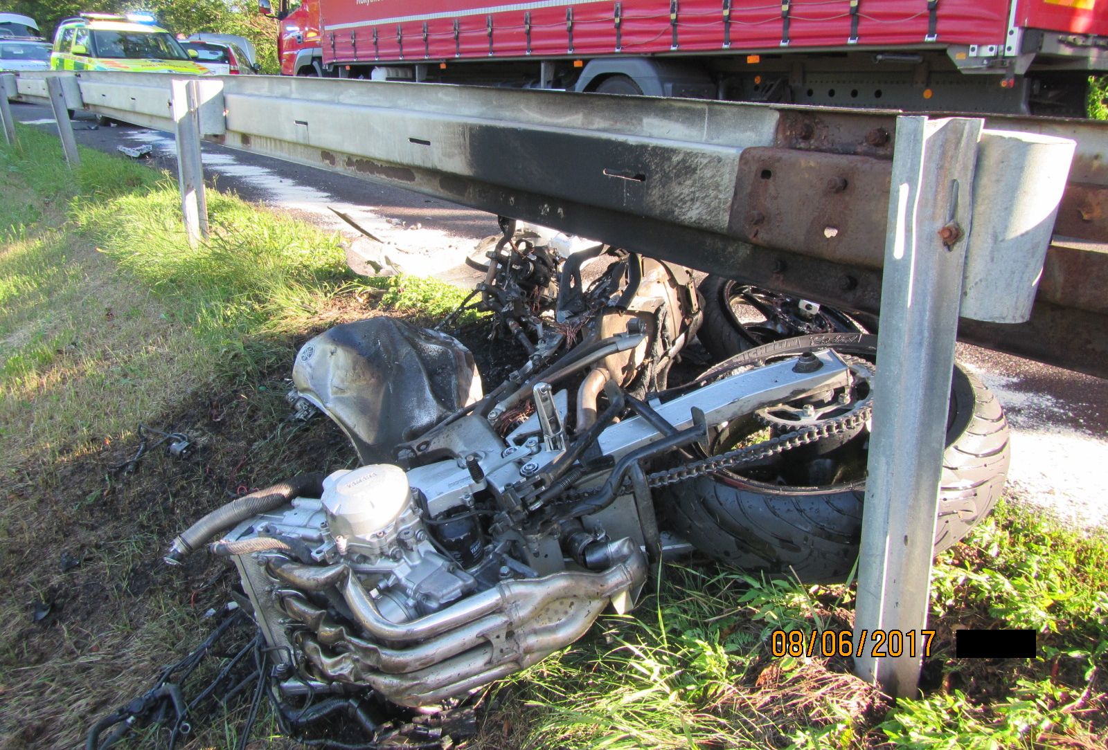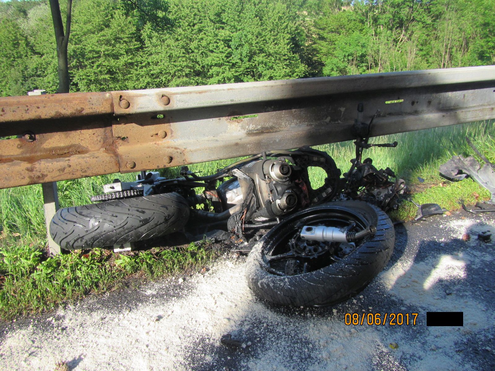 V 17:48 hodin přijal operátor tísňové linky krajských hasičů oznámení o dopravní nehodě motocyklu na komunikaci mezi Pozlovicemi a Petrůvkou. Oznamovatel také uvedl, že zraněný motorkář zůstal ležet na louce mimo komunikaci a jeho stroj hoří.