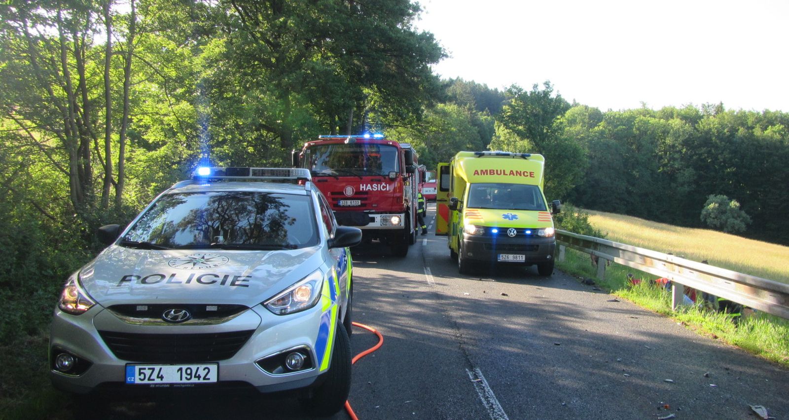 Ve čtvrtek, 8.6.2017 v podvečer, zasahovali na místě vážné dopravní nehody u Pozlovic na Zlínsku profesionální a dobrovolní hasiči, záchranáři, policisti a vrtulník letecké záchranné služby.