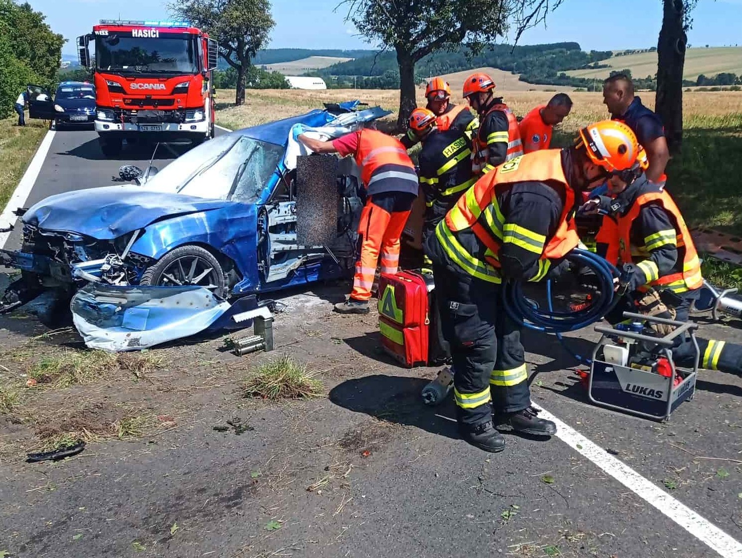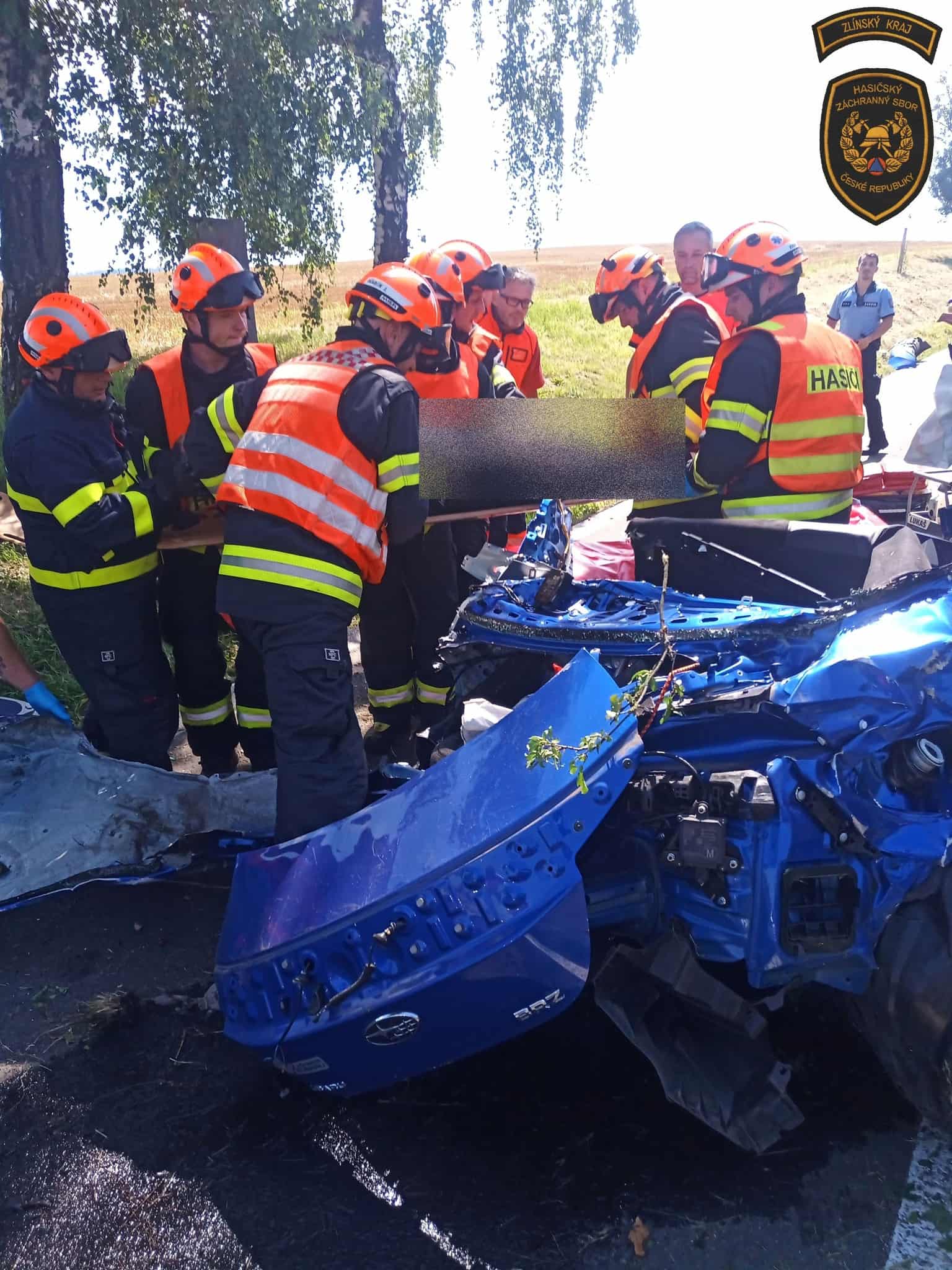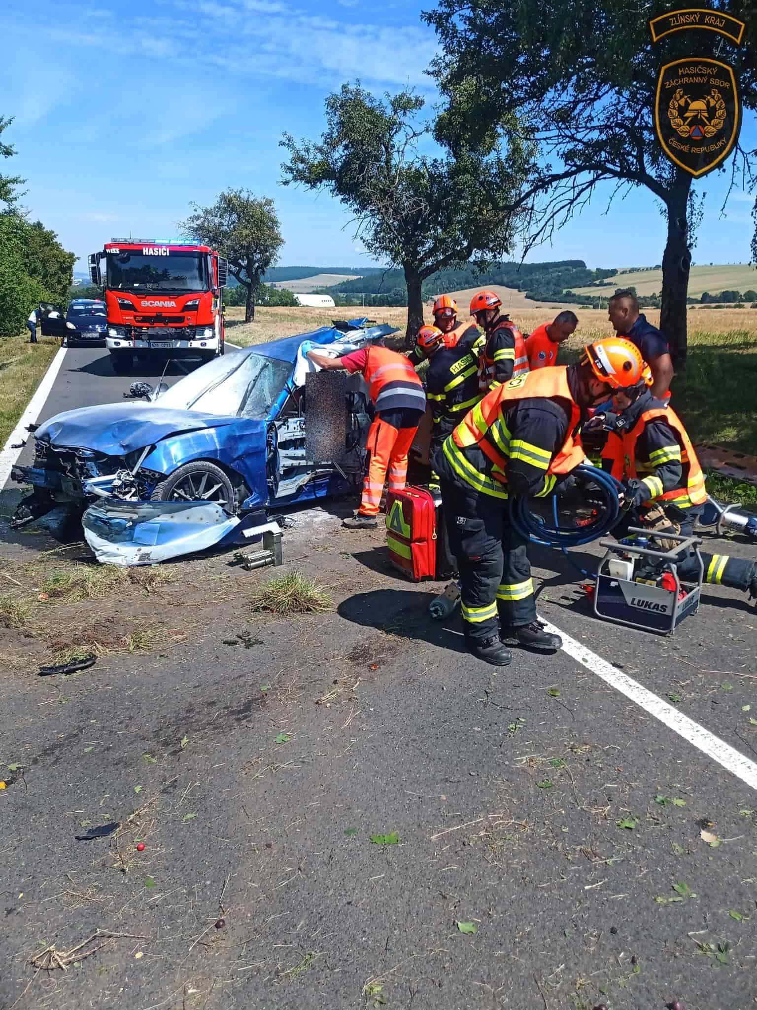 Na místo okamžitě vyjeli profesionální hasiči z Kroměříže a Morkovic-Slížan. Po příjezdu zjistili, že osobní automobil narazil do stromu a řidič zůstal zaklíněn ve vozidle. Za pomoci hydraulického vyprošťovacího zařízení se jim podařilo muže bezpečně uvolnit. Poté ho na páteřové desce vyprostili z vozu a předali do péče posádce Zdravotnické záchranné služby.
