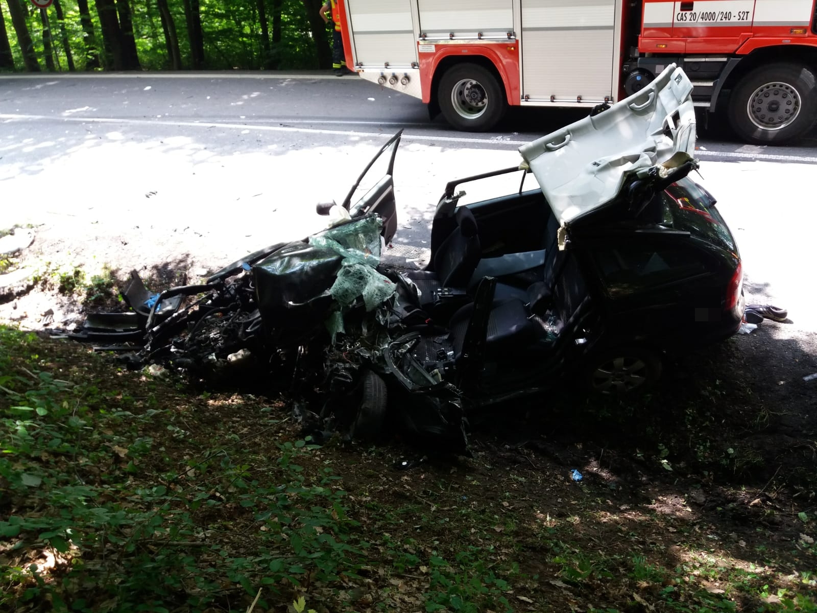 Hasiči po příjezdu na místo průzkumem zjistili, že se jedná o dopravní nehodu osobního vozidla a autobusu. Ve zachrana.pngvozidle byl zaklíněný těžce zraněný řidič. Toho hasiči ihned za použití hydraulického zařízení z vozidla vyprostili a poskytli mu předlékařskou péči. Poté jej předali záchranářům. Na místo nehody byl povolán vrtulník. V průběhu zásahu byl však odvolán. Zraněného řidiče záchranáři převezli do krajské nemocnice ve Zlíně.