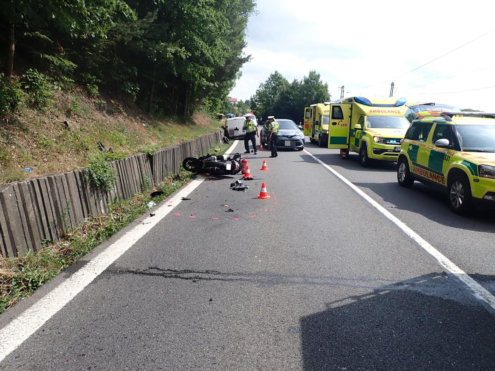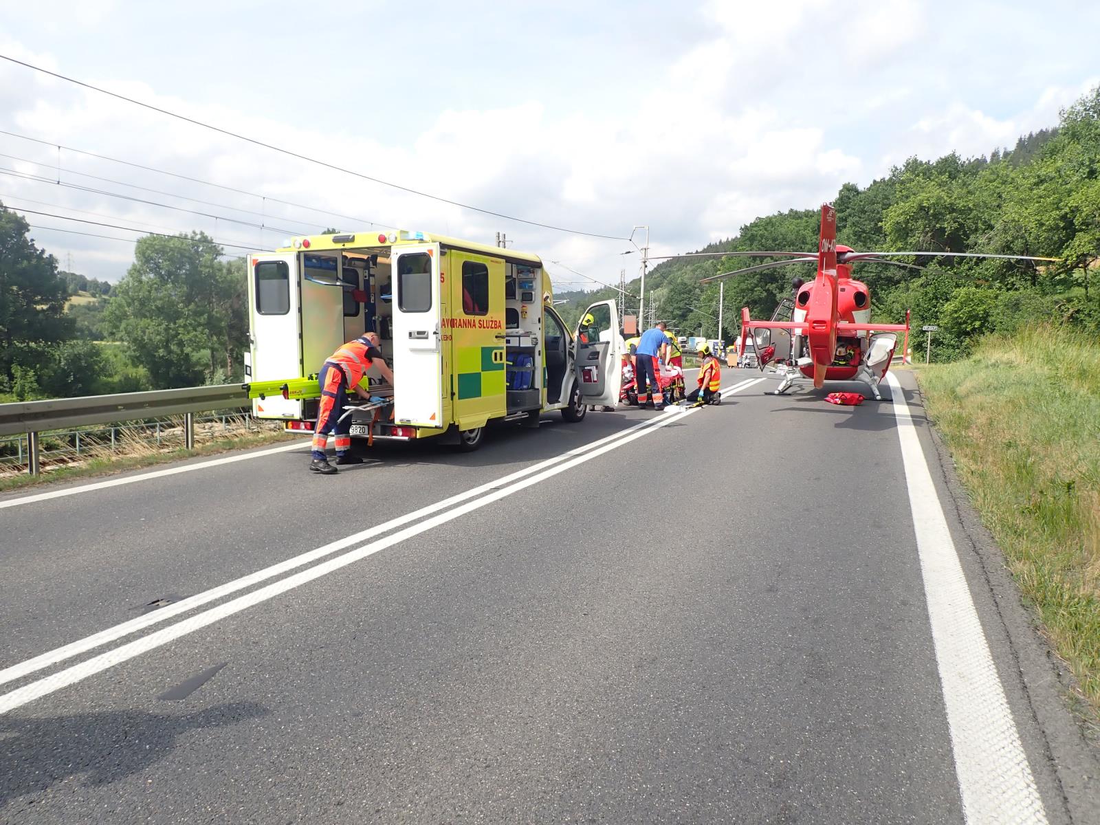 Po příjezdu k místu nehody hasiči průzkumem zjistili, že se zde střetla tři osobní vozidla s malým motocyklem. Při nehodě byl velmi vážně zraněn motorkář. Hasiči asistovali posádce zdravotnické záchranné služby při jeho ošetření. Vzhledem k rozsahu zranění byl na místo povolán vrtulník, který transportoval muže do ostravské nemocnice. Dále byl zraněn řidič vozidla Fiat, kterého převezl sanitní vůz do nemocnice k dalšímu vyšetření. Řidičky z dalších vozidel vyvázly bez zranění.