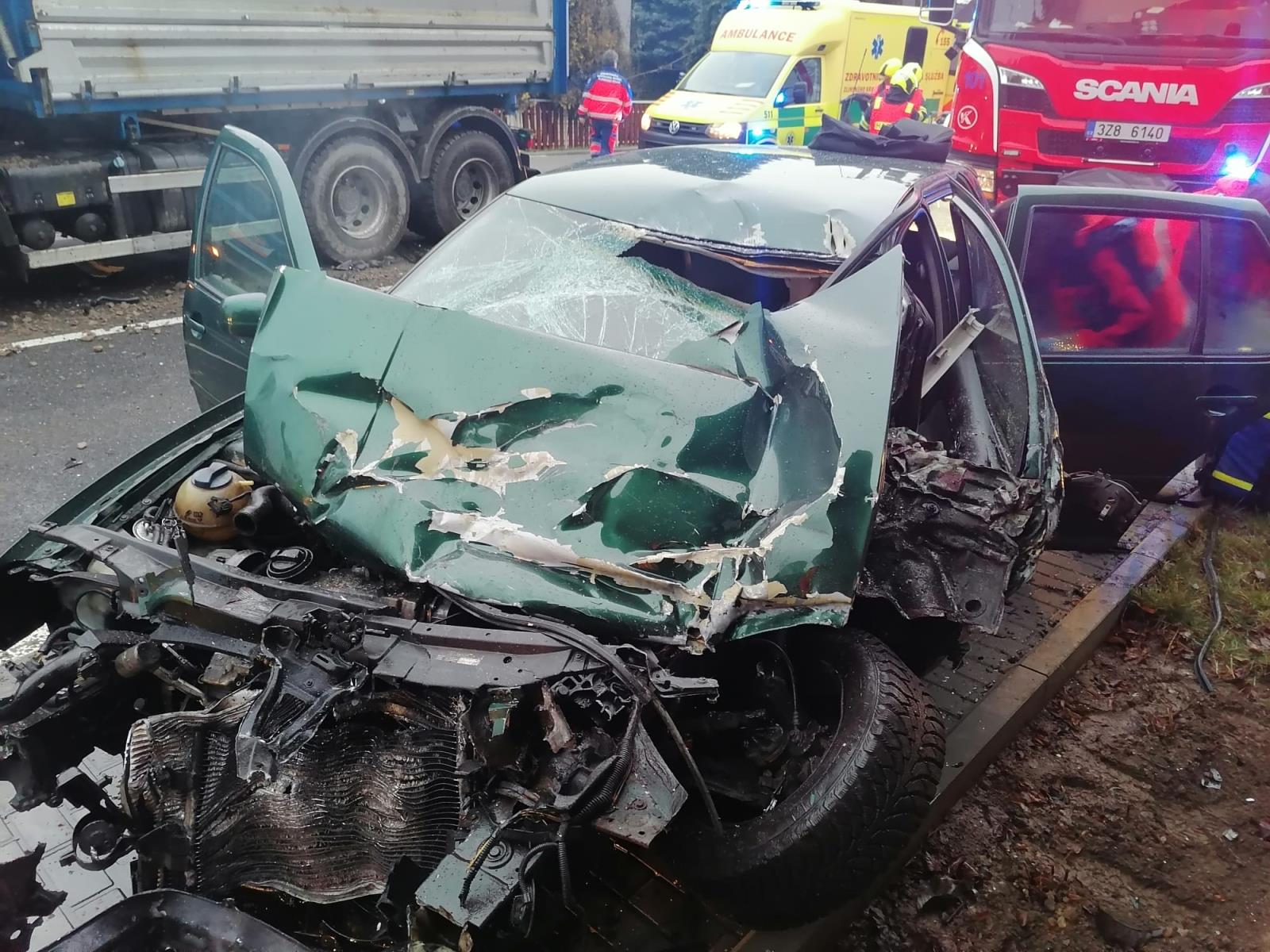 Řidič kamionu při střetu taktéž utrpěl zranění a skončil v péči zdravotnické záchranné služby, která jej převezla do nemocnice ve Vsetíně.