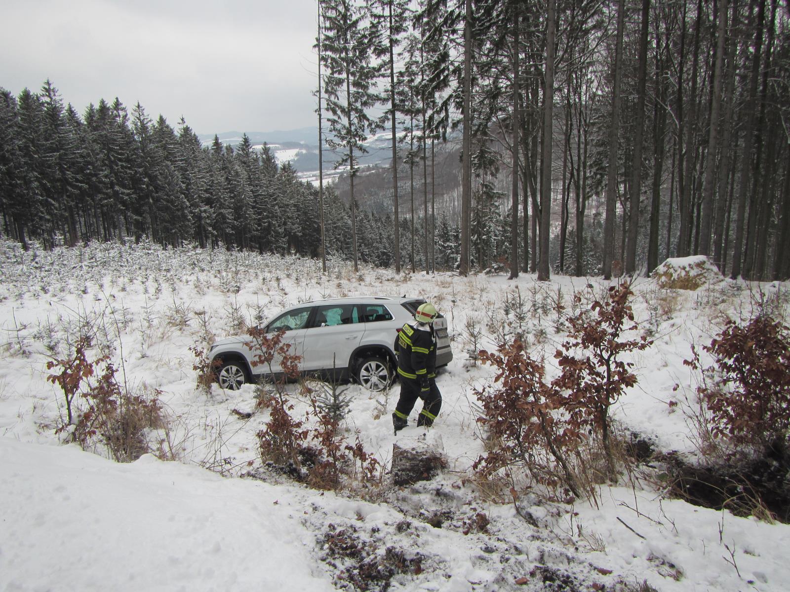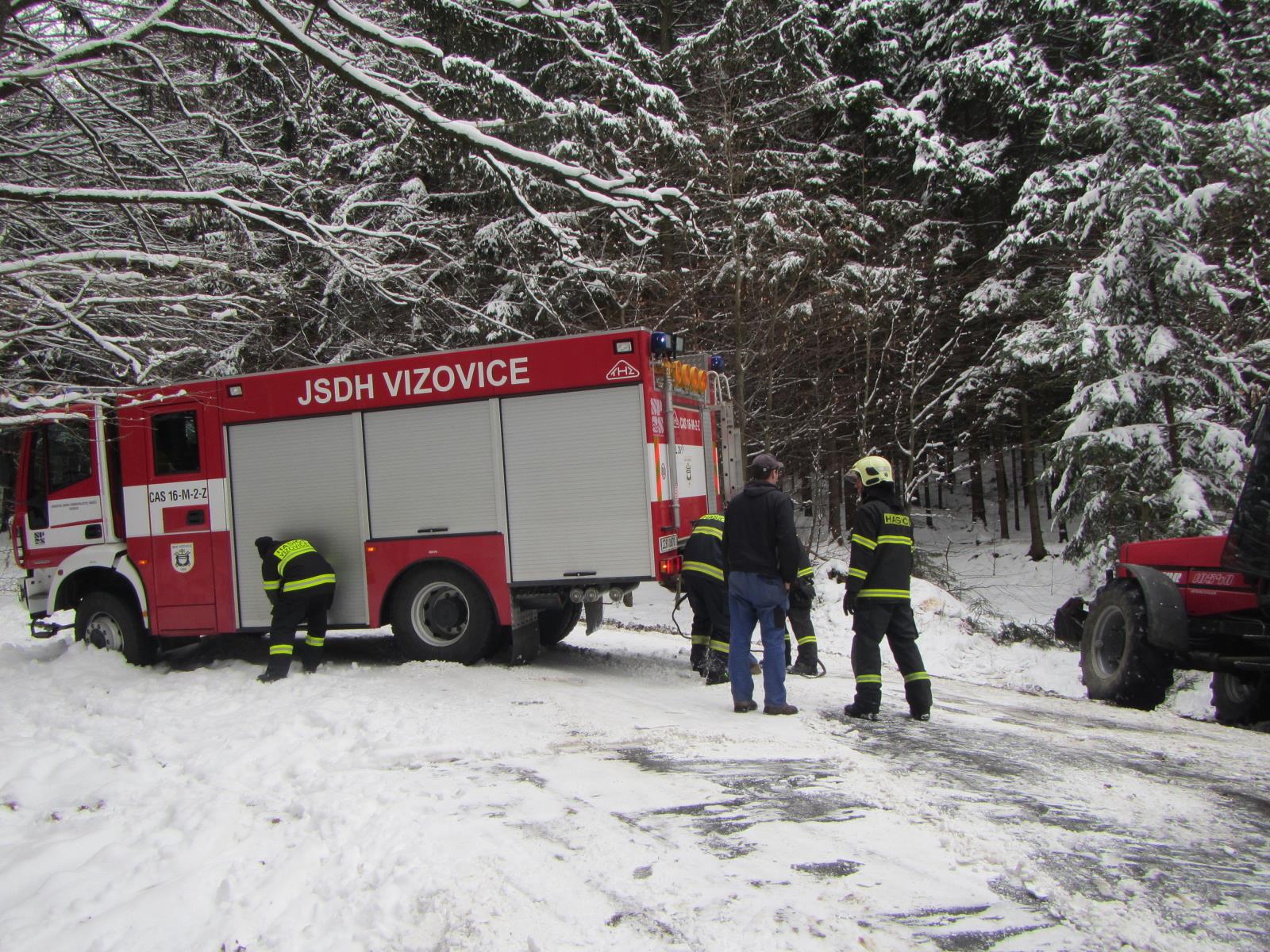 Obě jednotky byly vyslány do Vizovic na Zlínsku, kde havarovalo osobní vozidlo. Navigace navedla řidiče na v zimě neudržovanou komunikaci. Zde na zledovatělé cestě auto sjelo ze srázu a několikrát se přetočilo přes střechu. Ve vozidle cestovali manželé s dítětem. Všichni následně skončili v péči záchranářů, kteří je ošetřili v sanitním voze. I přes děsivě vyhlížející nehodu nikdo z vozidla neutrpěl vážné zranění.