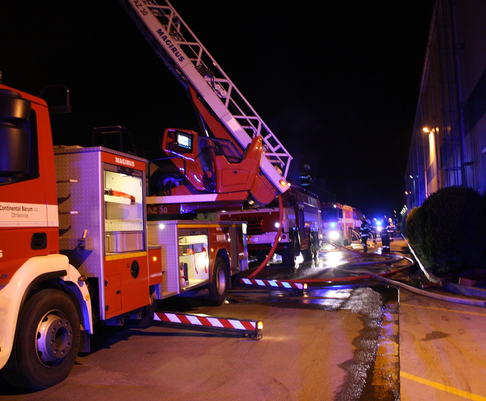 Kromě pokračujících výbuchů tlakových lahví a destrukcí stavebních konstrukcí objektu hasičům komplikoval zásah také vysoký žár. V jednom časovém úseku museli někteří hasiči opustit koše výškové techniky, protože žár nad objektem byl tak silný, že se jim začaly tavit obličejové masky dýchací techniky. Intenzivní žár také ohrožoval část techniky a opláštění jedné ze sousedních průmyslových hal. Jak bylo také zjištěno, v jedné části hořícího objektu byly umístěny zásobníky s asi 200 tunami tuku a menší množství hořlavých kapalin.