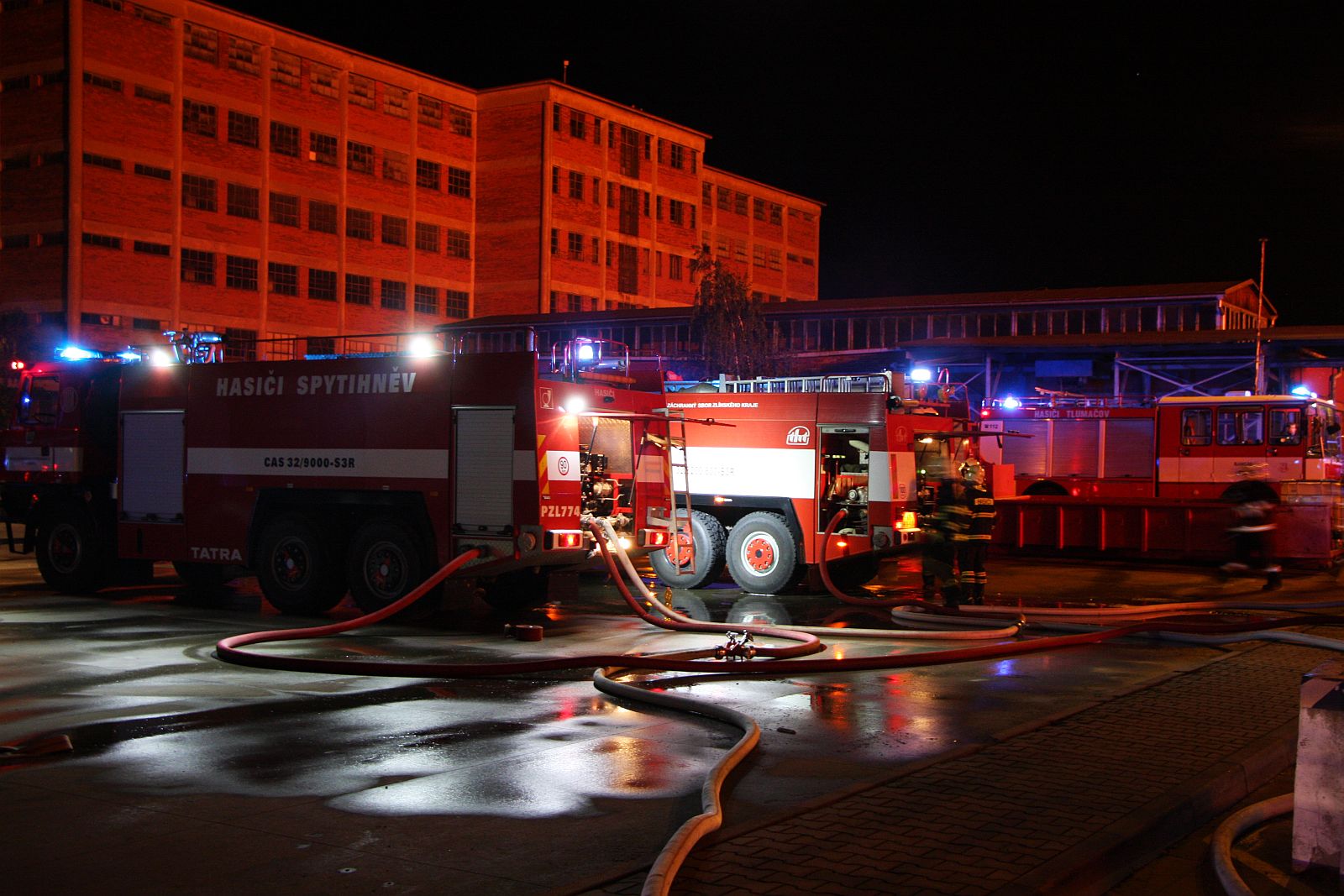 Intenzivním hašením vodou a pěnou ze všech stran objektu se hasičům podařilo zabránit rozšíření požáru na okolní průmyslové objekty. Dařilo se také postupně hasit jednotlivé části objektu. Vysoká spotřeba vody si vyžádala doplňování cisteren z hydrantů a na místo zásahu byly dopravovány také další zásoby pěnidel. O dodání dalšího pěnidla byli požádáni také kolegové z Olomouckého a Jihomoravského kraje.