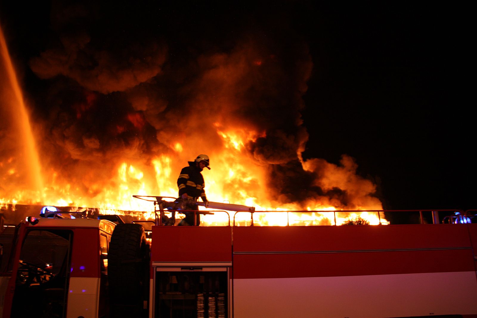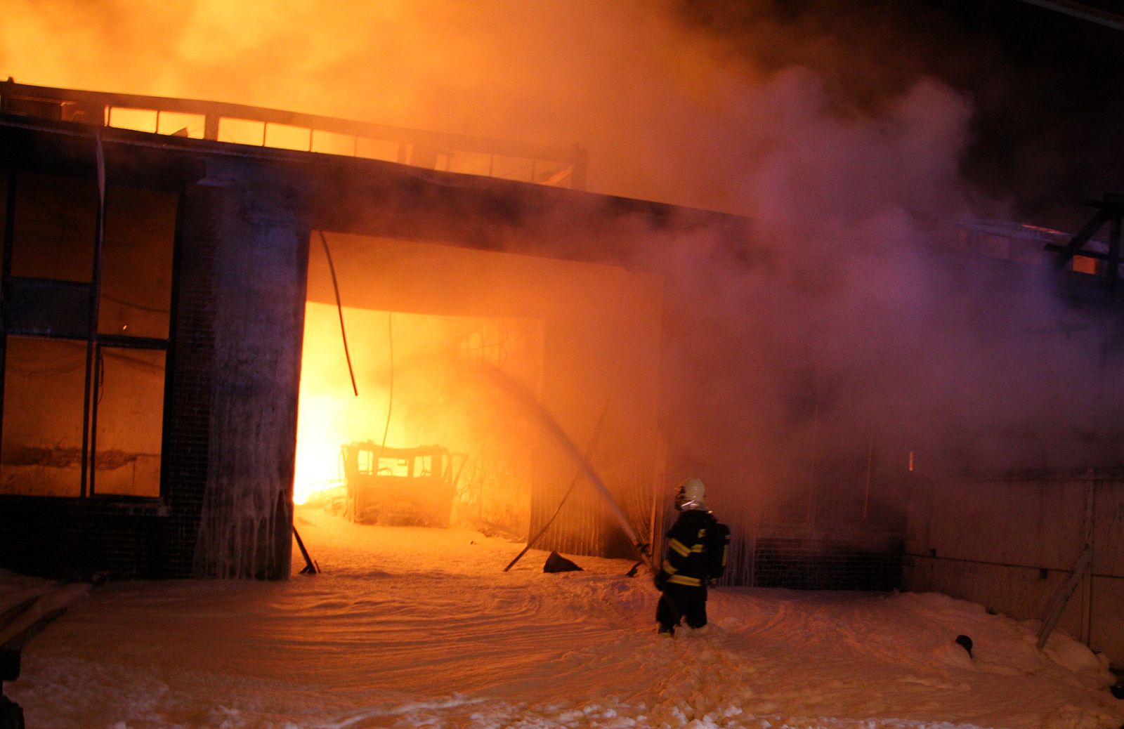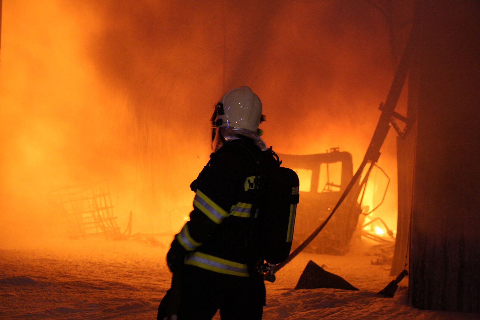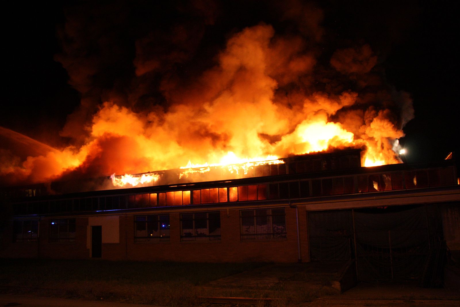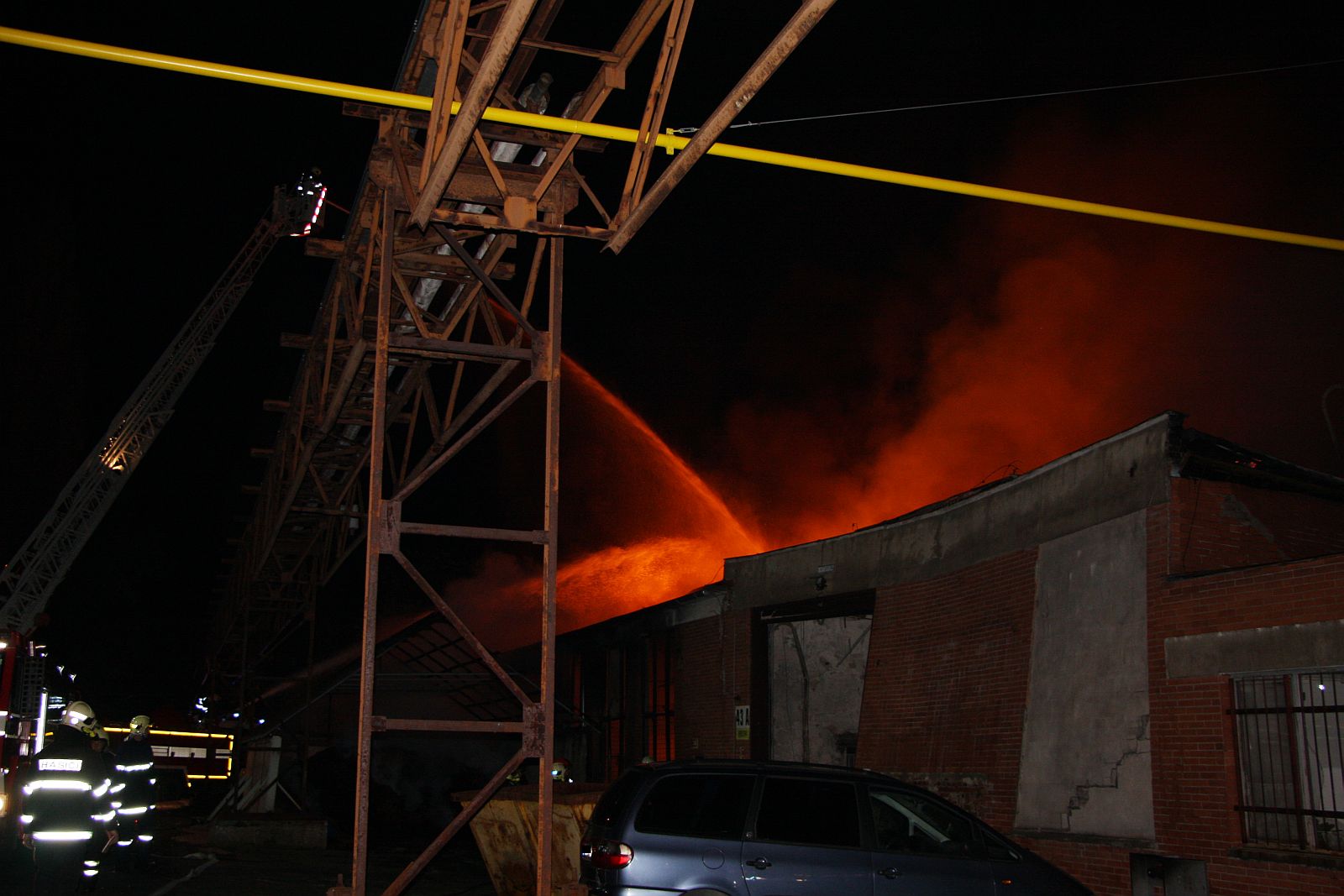 Po příjezdu prvních jednotek hasičů bylo zjištěno, že požár zasáhl prakticky celý jednopodlažní objekt o půdorysu asi 15 x 30 metrů. Plameny šlehaly vysoko nad střešní konstrukce a z objektu se postupně ozývaly výbuchy tlakových lahví. Hasiči byli nuceni ustoupit do bezpečné vzdálenosti a objekt hasit pouze z vnější strany. Vstup do vnitřních prostor byl naprosto vyloučen.