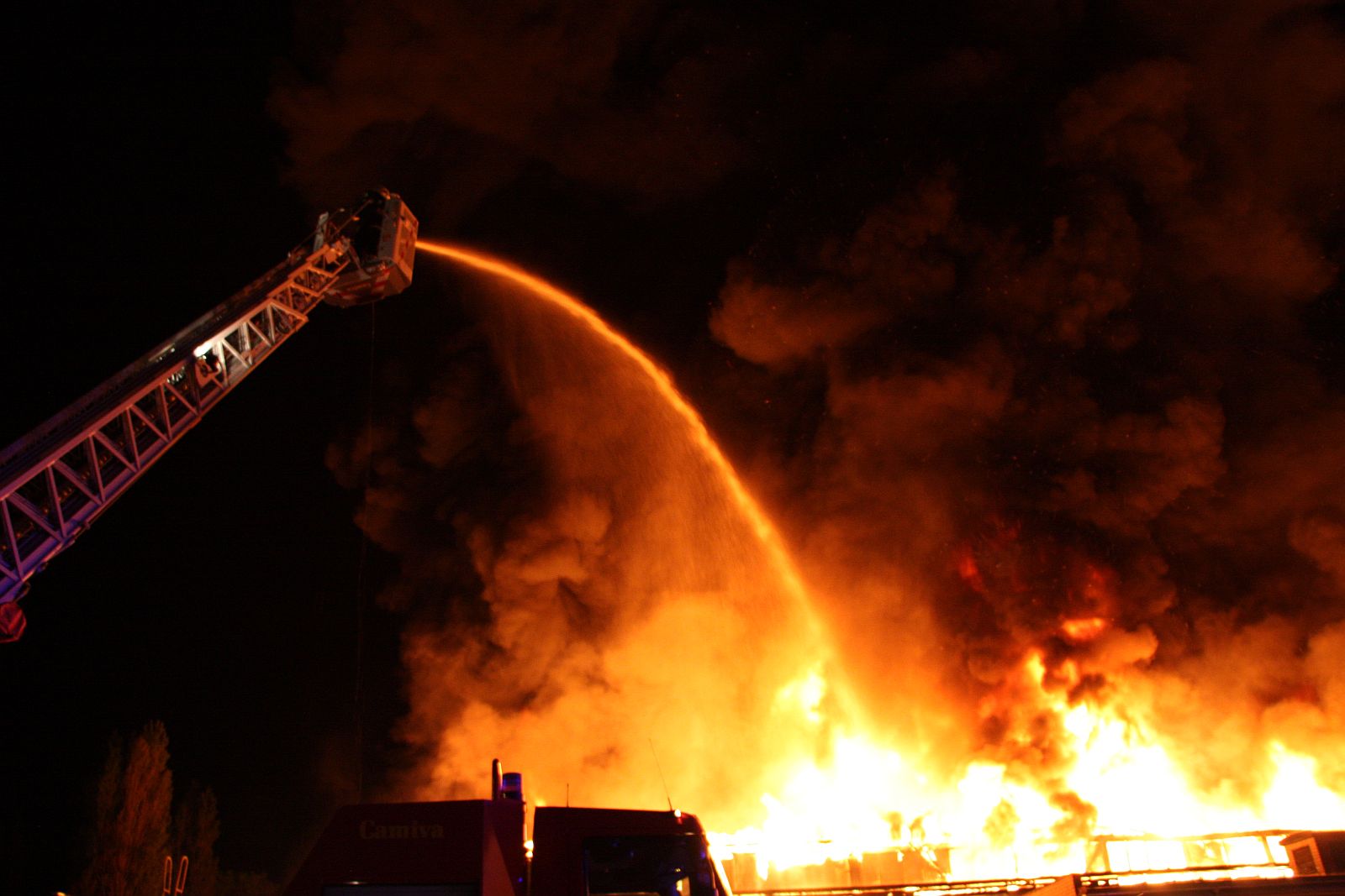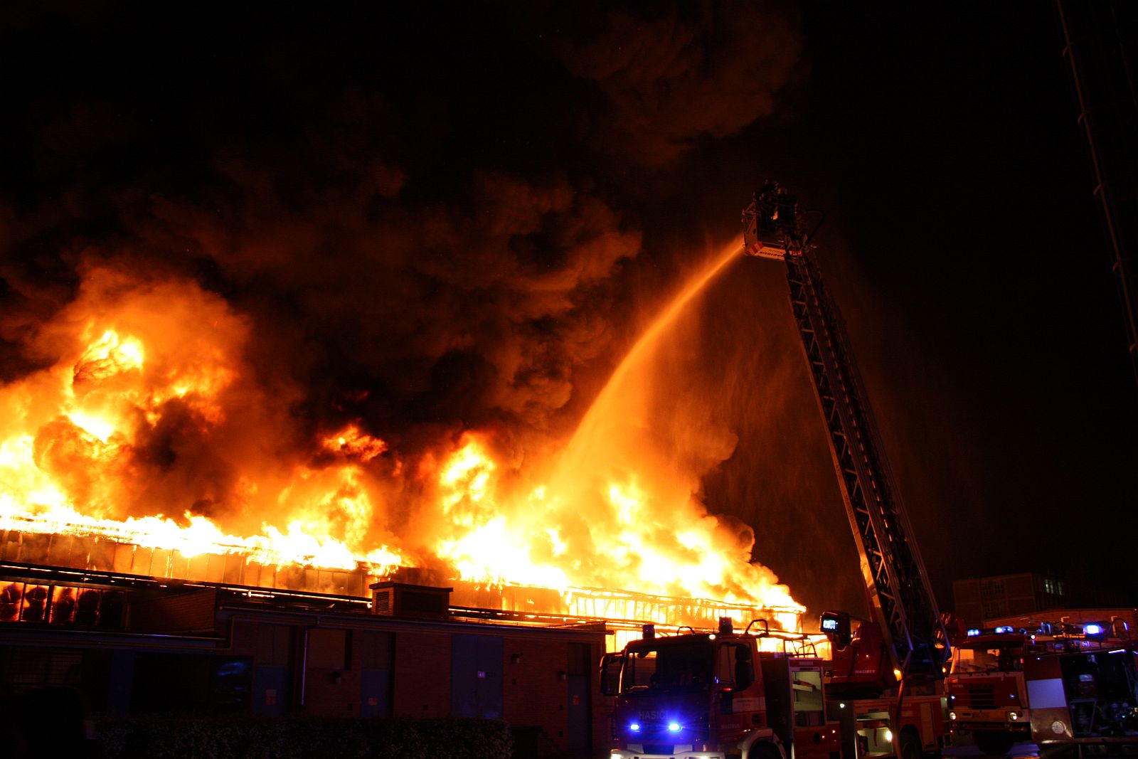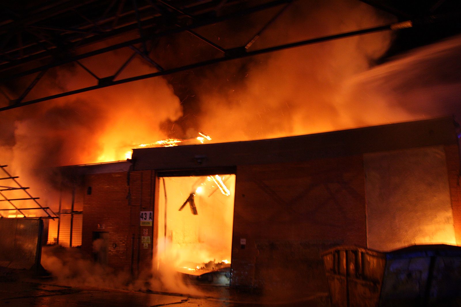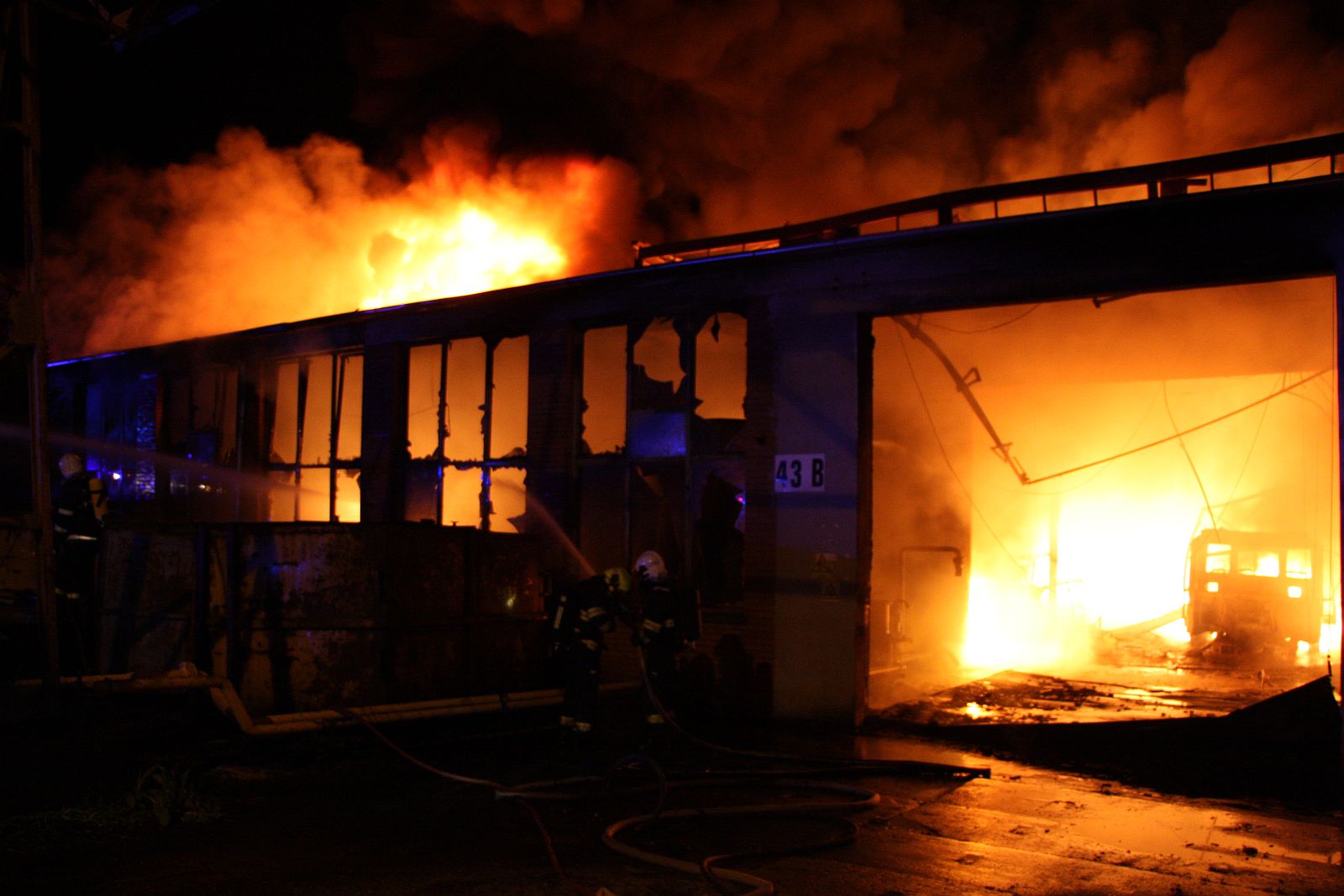 Po příjezdu prvních jednotek hasičů bylo zjištěno, že požár zasáhl prakticky celý jednopodlažní objekt o půdorysu asi 15 x 30 metrů. Plameny šlehaly vysoko nad střešní konstrukce a z objektu se postupně ozývaly výbuchy tlakových lahví. Hasiči byli nuceni ustoupit do bezpečné vzdálenosti a objekt hasit pouze z vnější strany. Vstup do vnitřních prostor byl naprosto vyloučen.