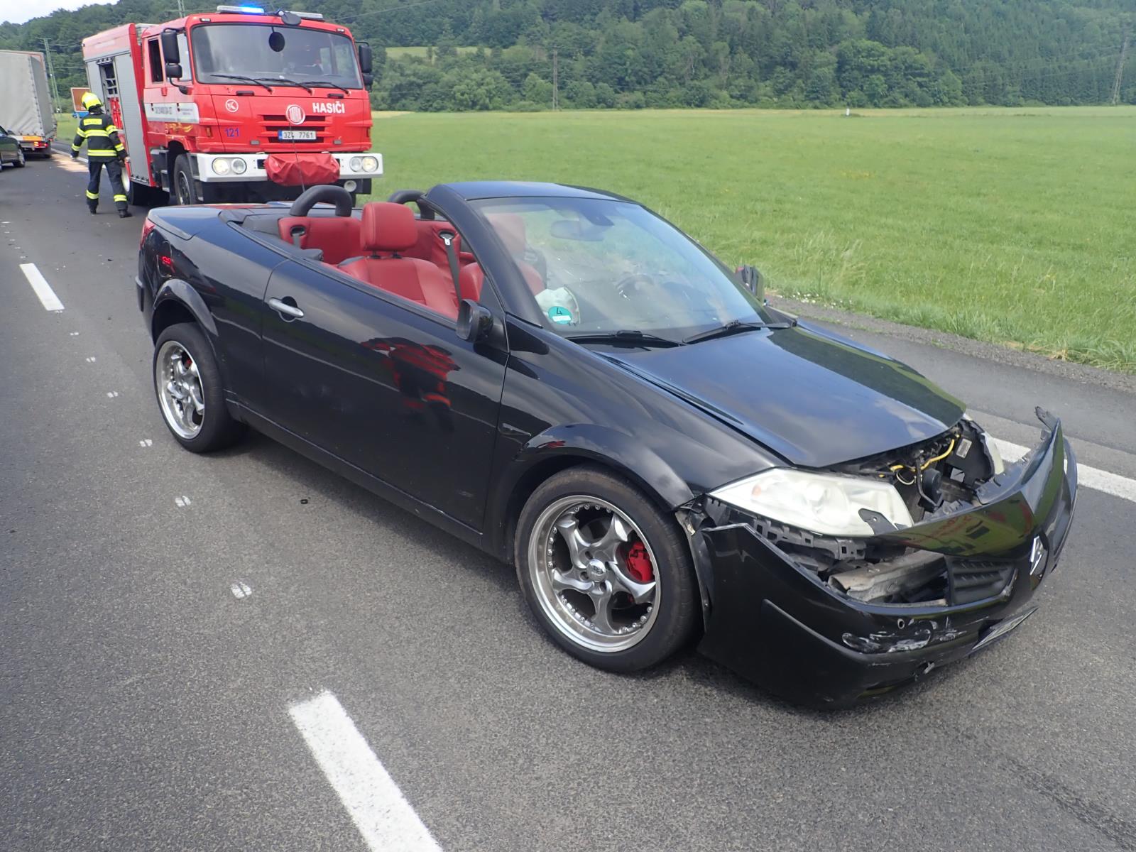 Řidič osobního vozidla Renault Megane kabriolet skončil po nehodě v péči posádky zdravotnické záchranné služby. Další dva řidiči vyvázli bez zranění.