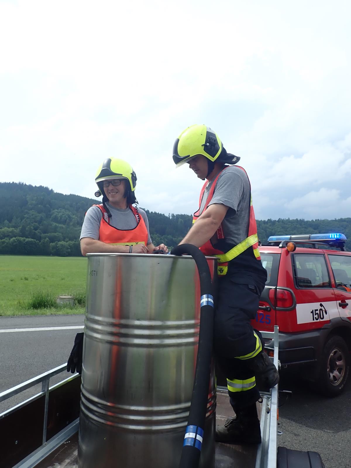 Po příjezdu na místo hasiči zjistili, že z kamionu, vezoucího pneumatiky, uniklo přes 300 litrů paliva. Dalších 400 litrů hasiči z vozidla zachytili do barelu. Uniklou naftu na silnici zasypali sorbentem. Taktéž provedli u vozidel protipožární opatření a odpojení autobaterií.