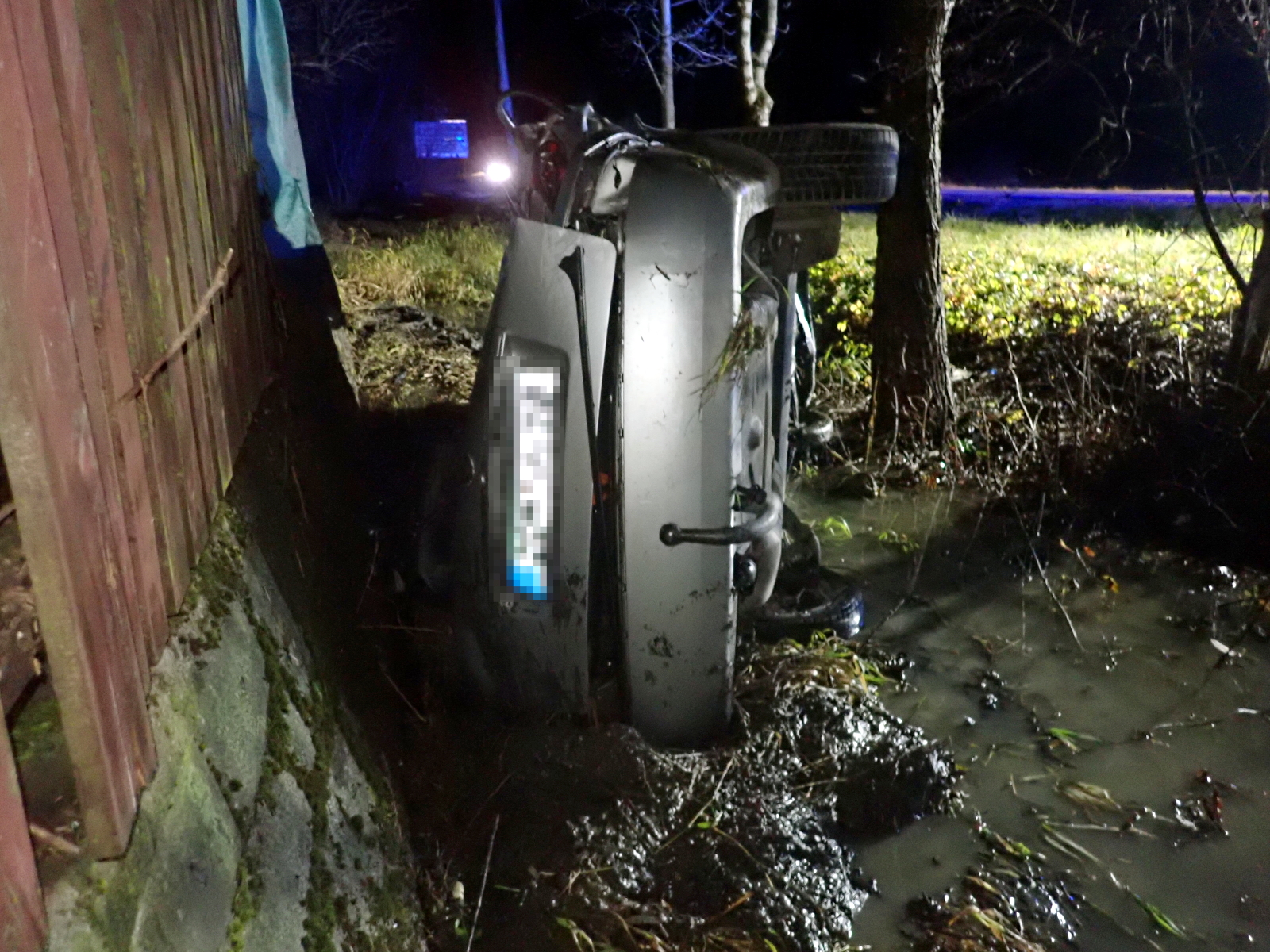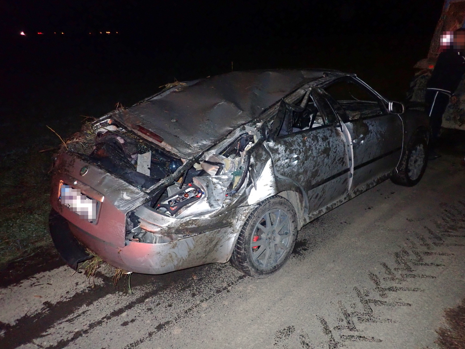 Velké štěstí měla posádka vozu, který havaroval u obce Janová