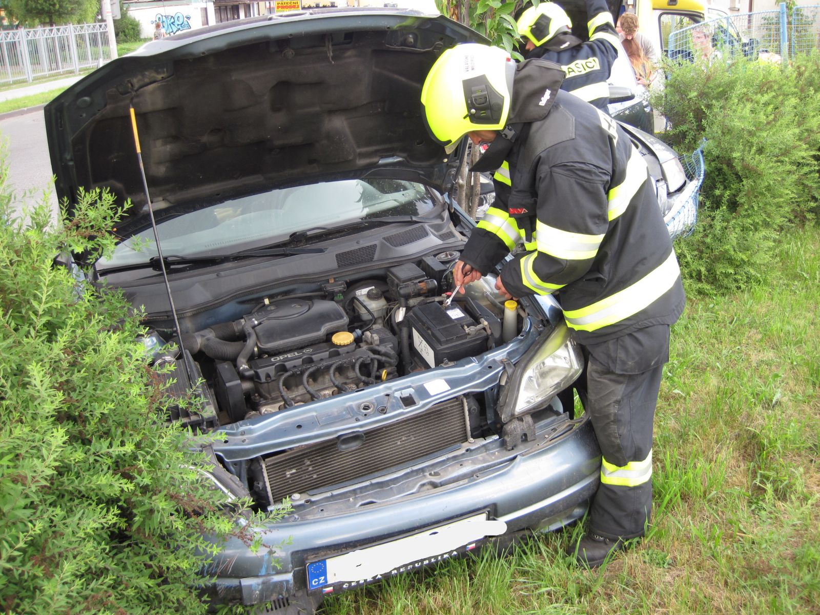 Vozidla prorazila oplocení hřiště. Vyprostit je museli hasiči