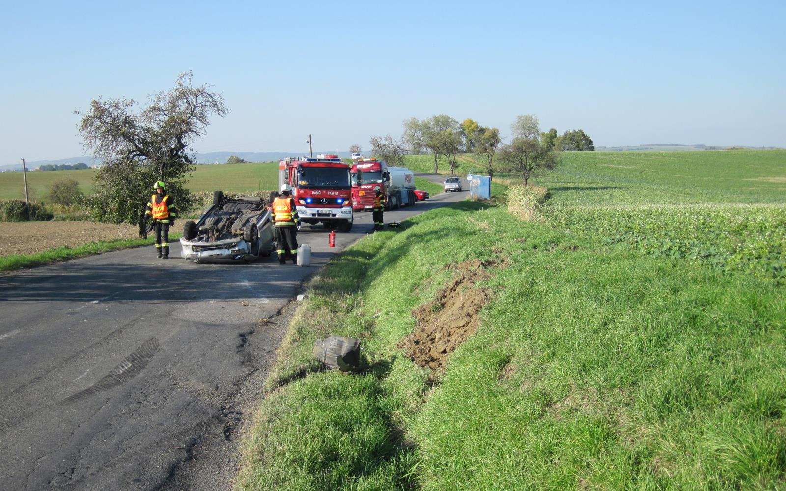 Velitel zásahu po příjezdu na místo průzkumem zjistil, že řidič osobního vozidla tovární značky Mazda při jízdě narazil s autem do příkopu. Poté se vozidlo přetočilo na střechu a skončilo uprostřed vozovky. Po příjezdu hasičů byl již mladý řidič mimo vozidlo. Při havárii utrpěl zranění. Prvotní ošetření mu poskytli hasiči, včetně nasazení krčního límce. Na místo přijeli i záchranáři, kteří si řidiče převzali do své péče.