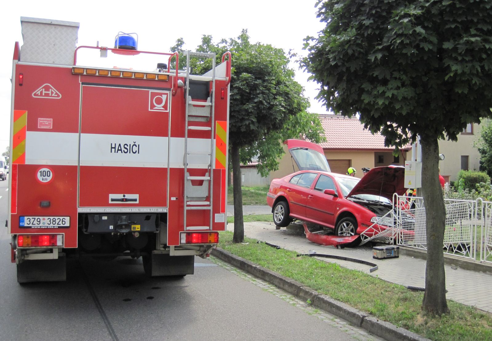 Vozidlo zastavilo o plot domu. Hasiči poskytli první pomoc zraněnému řidiči