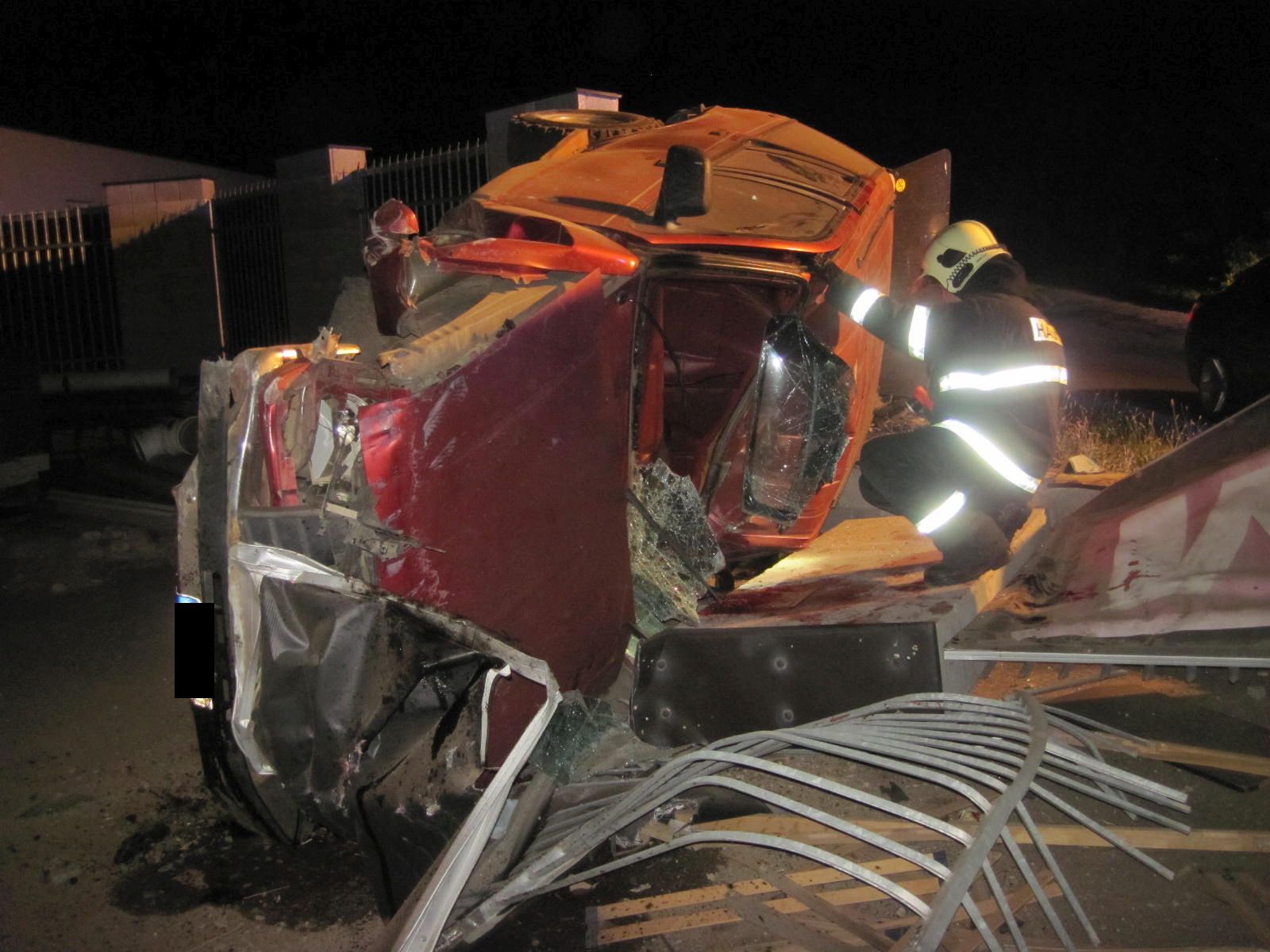 Jednotka profesionálních hasičů ze stanice Uherský Brod dorazila na místo hlášené dopravní nehody v 01:20 hodin. Osobní vozidlo prorazilo oplocení pozemku poblíž komunikace a skončilo převrácené na levém boku. Na místě se nacházely tři zraněné osoby. Všechny byly v době  příjezdu hasičů mimo zdemolované vozidlo.