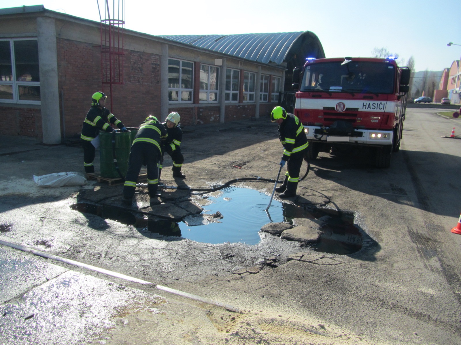 Uniklou kapalinu, kterou se podařilo zachytit, odčerpali hasiči pomocí speciálního ručního čerpadla do sudů. Další část bohužel unikla do zeminy. Na místo byl povolán také odborník z čističky odpadních vod a zástupce životního prostředí z Otrokovic.