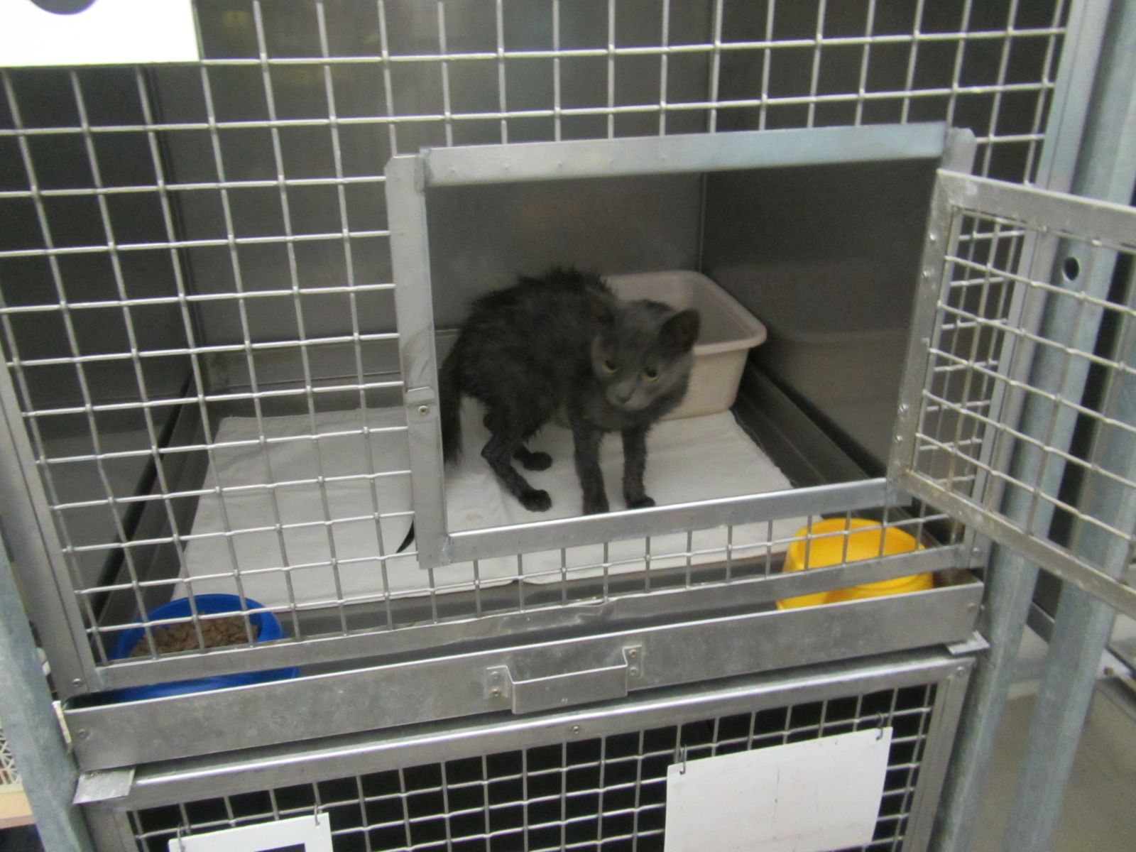 Značně podvyživené, vyčerpané a vystrašené kotě se usadilo přímo uprostřed kašny u vodotrysku a bylo zřejmé, že se vlastními silami nedokáže z místa dostat.