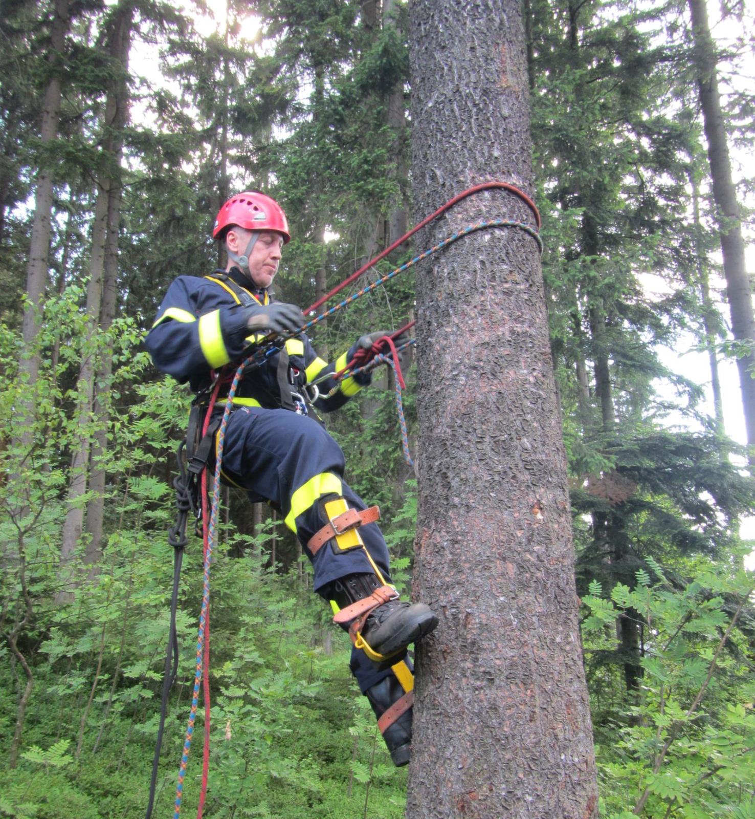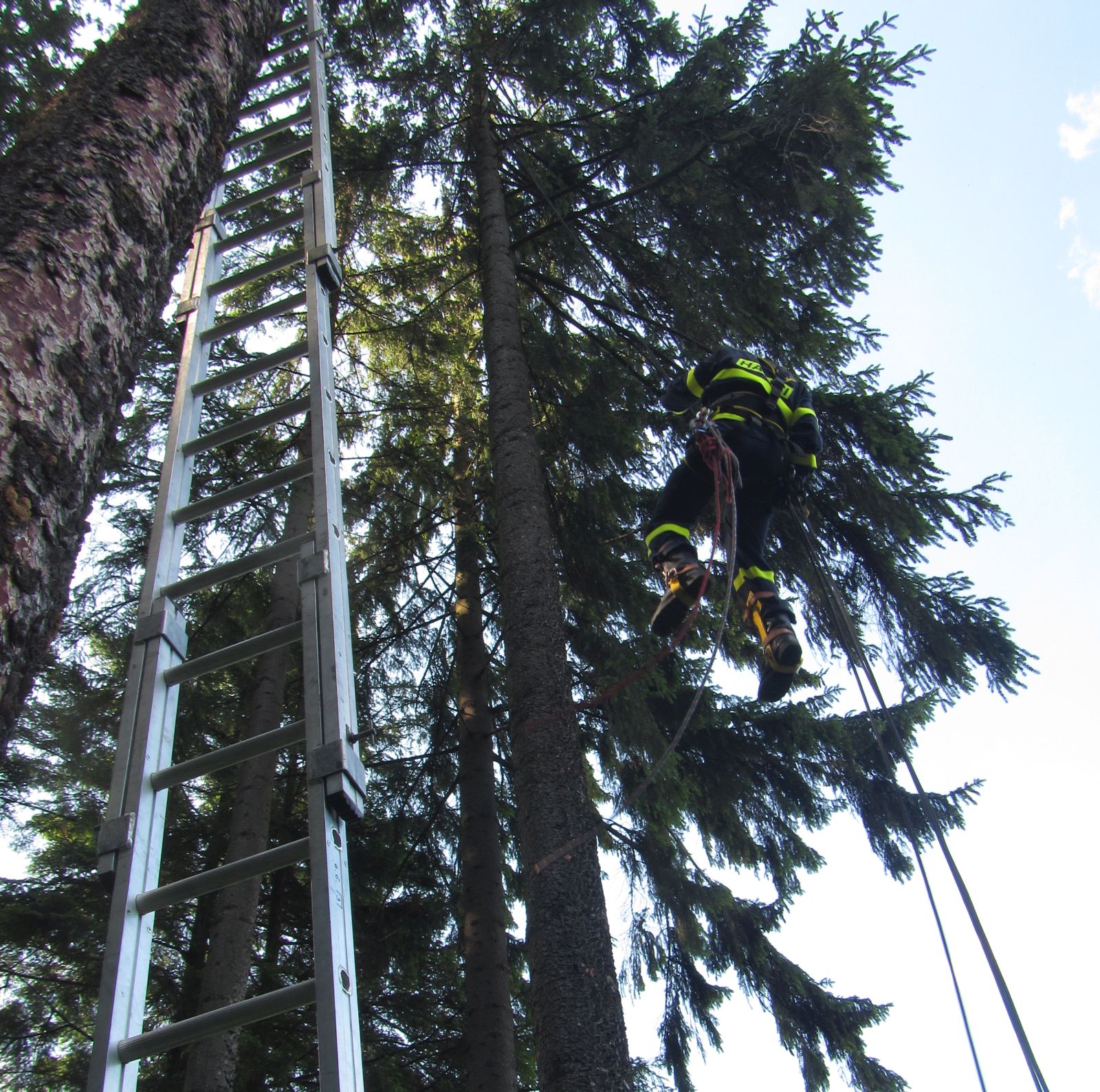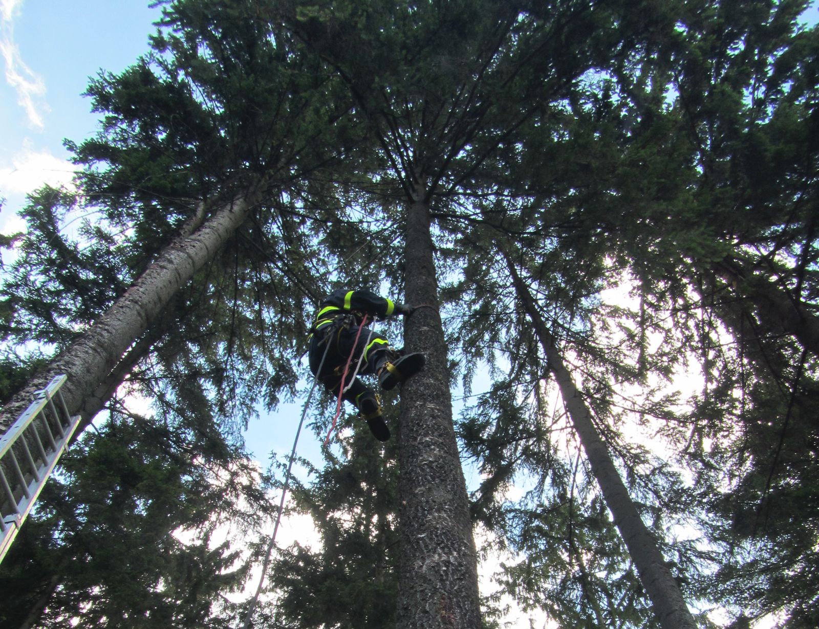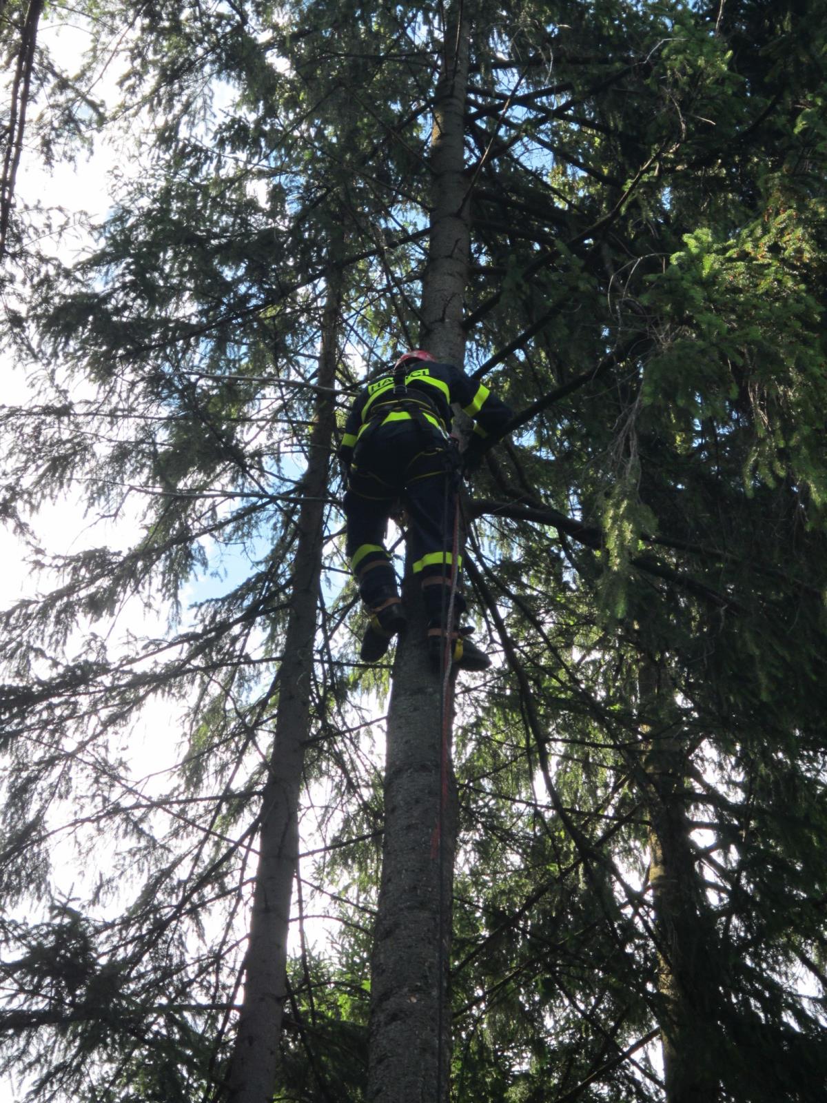 Po příjezdu na místo bylo zjištěno, že se opeřenec nachází ve větvích na samotném vrcholku asi dvacet metrů vysokého stromu. Hasiči připravili potřebné lezecké vybavení a jeden z členů lezecké skupiny vystoupal po kmeni stromu až k samotnému vrcholku. K výstupu použil i speciálních stupadel.