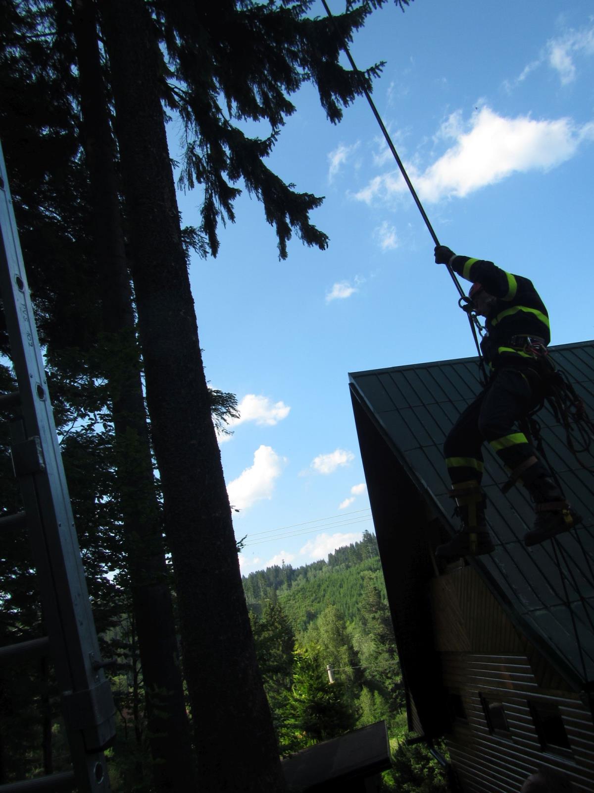 Profesionální hasiči lezci ze stanice Valašské Meziříčí v sobotu , 24.6. 2017. zasahovali u obce Horní Bečva.