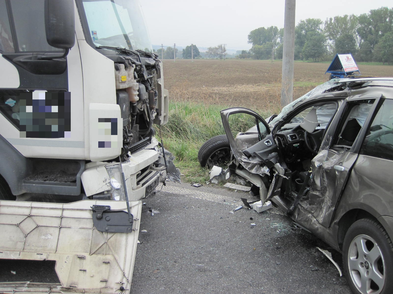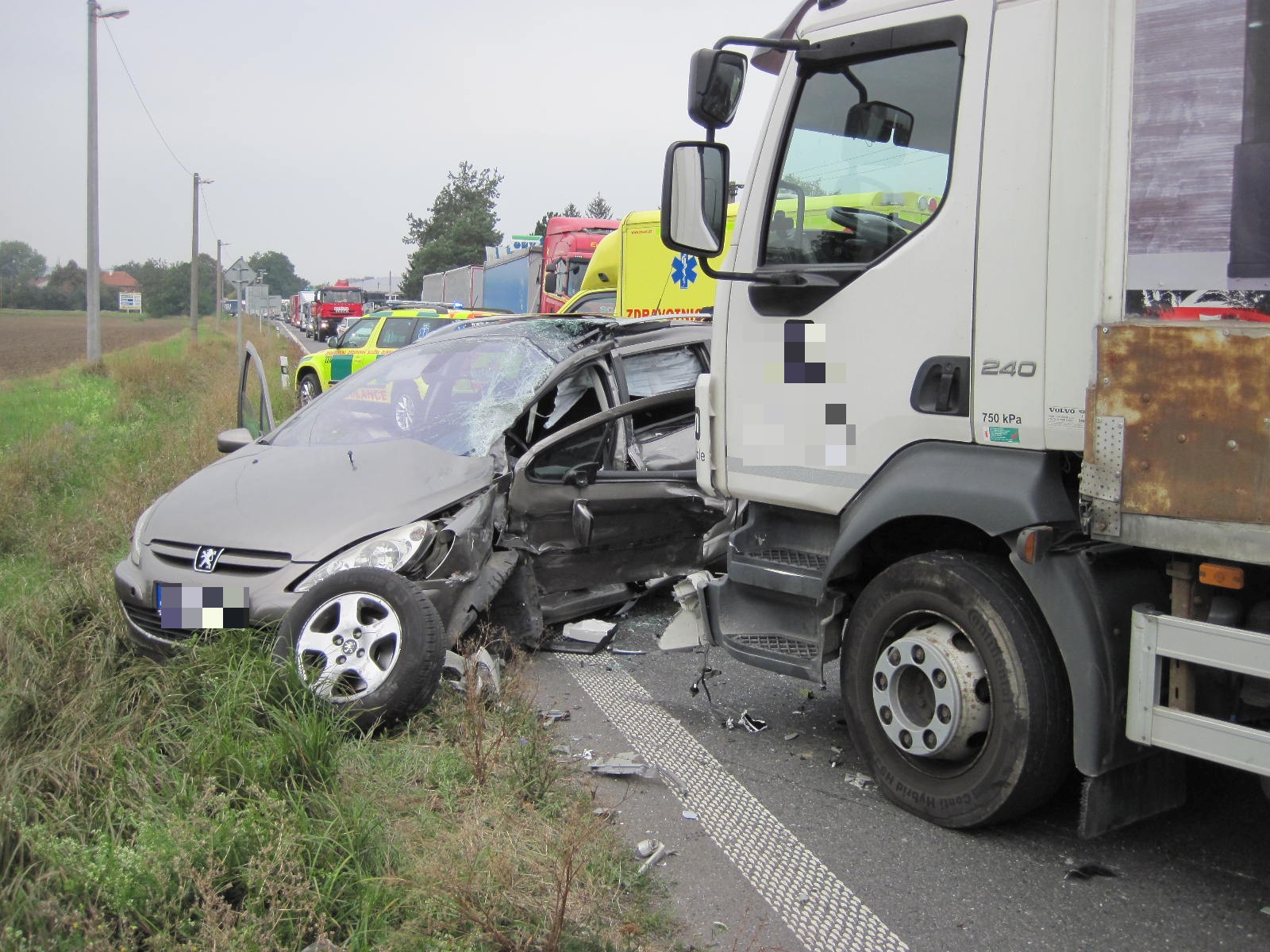 Nákladní vozidlo, jedoucí od Bánova na Uherské Hradiště se střetlo na křižovatce u čerpací benzínové stanice s osobním vozidlem. Řidič nákladního auta narazil do boční části auta v místě řidiče. Ten zde zůstal zaklíněn. Přivolaní hasiči řidiče za pomoci hydraulického zařízení vyprostili z vozidla a předali přivolaným záchranářům, kteří jej poté převezli do krajské nemocnice.