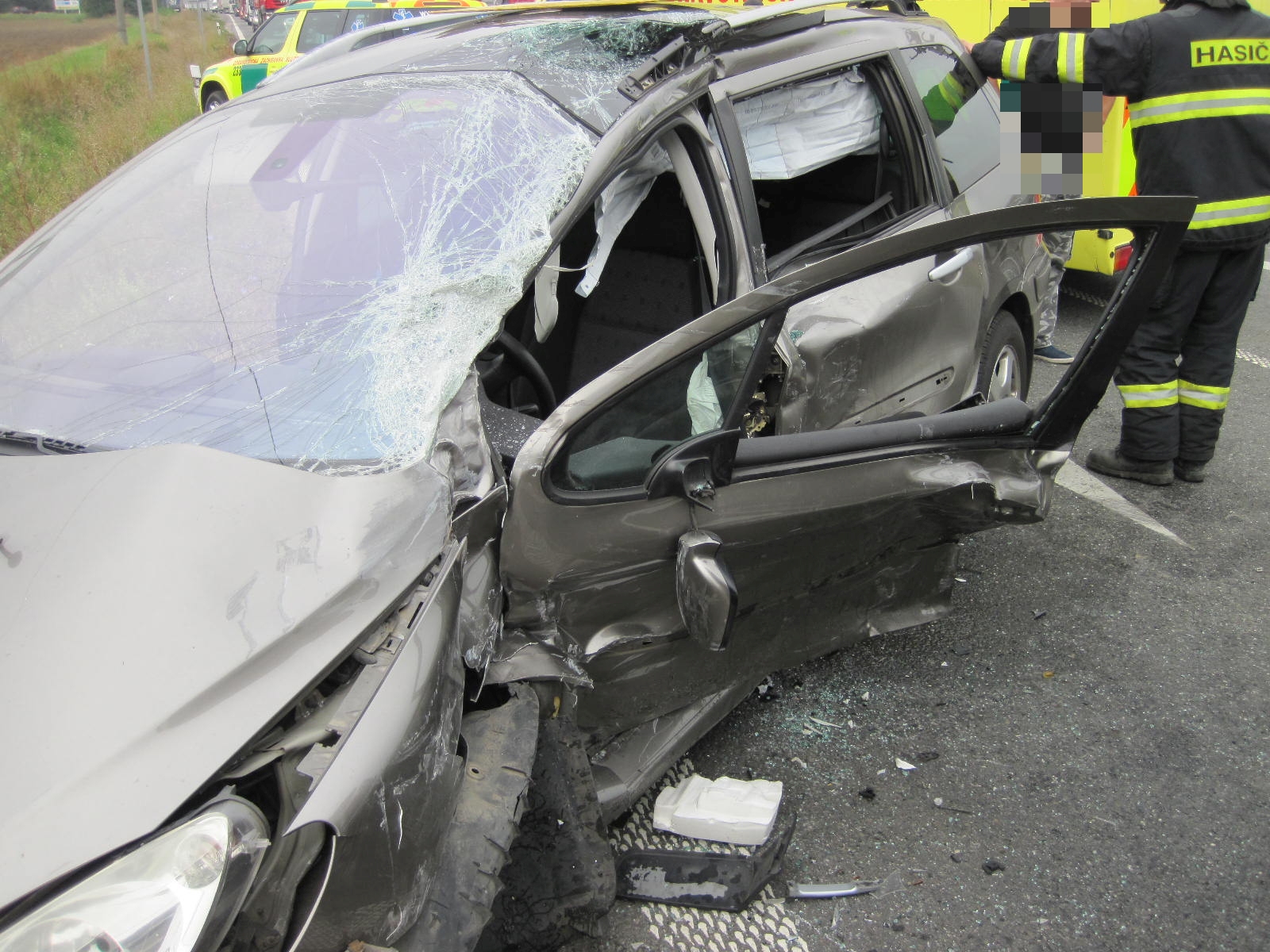 U vozidel provedli hasiči protipožární opatření a po zadokumentování místa nehody dopravními policisty uklidili vozovku od střepů a úlomků z vozidel.